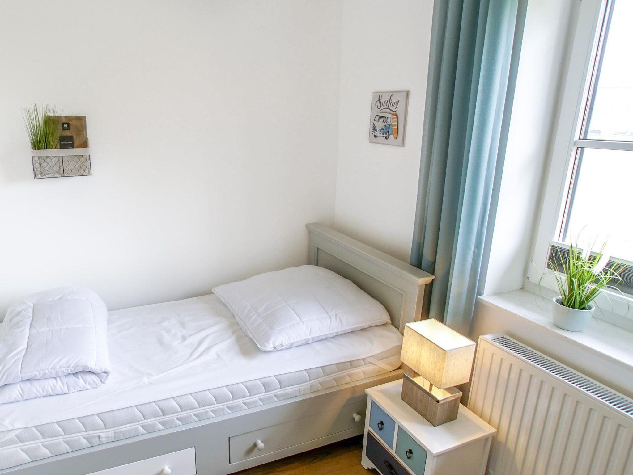 • 3 Schlafzimmer: ein Zimmer mit zwei Einzelbetten, zwei Zimmer mit einem Doppelbett und Zusatzbett, Bettwäsche auf Wunsch (Fenster mit Plissees)