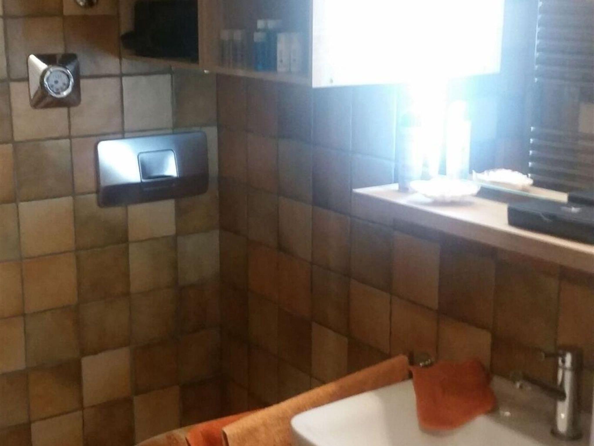 Das Bad besteht aus Dusche, Waschtisch und WC.