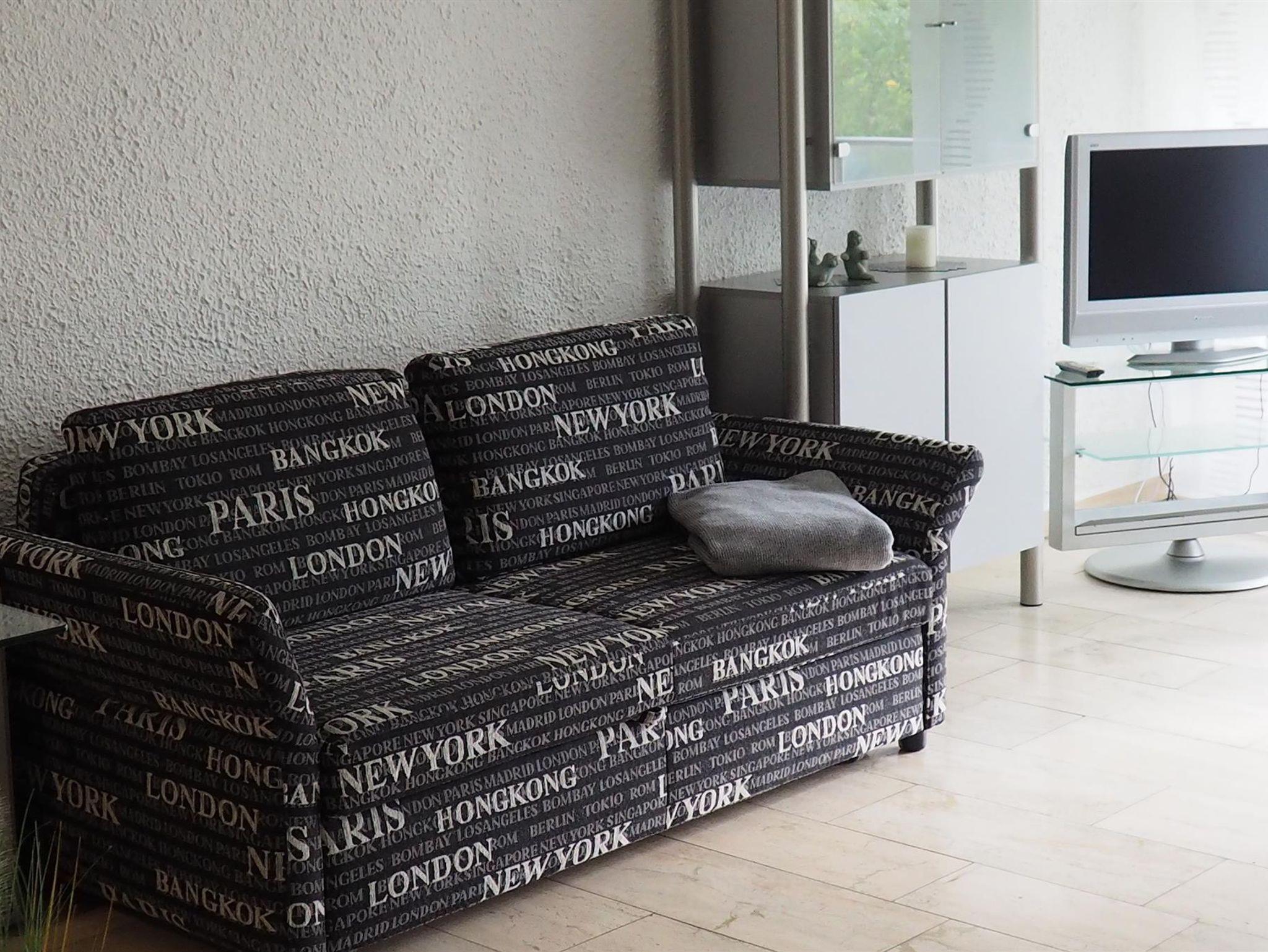 Ein Esstisch trennt die vollausgestattete Küche (Herd, kleiner Backofen, Kühlschrank, Geschirrspülmaschine, Kaffeemaschine, Wasserkocher und Toaster) vom Wohnbereich mit gemütlicher Sitzecke, LCD-Fernseher lädt ebenso wie die Loggia zum Entspannen ein. Neben einem separatem Schlafzimmer befindet sich ein großes vollwertiges und komfortables Schlafsofa (140x205) im Wohnbereich. Ein großer Balkon mit Sitzmöbeln steht Ihnen zu Verfügung.