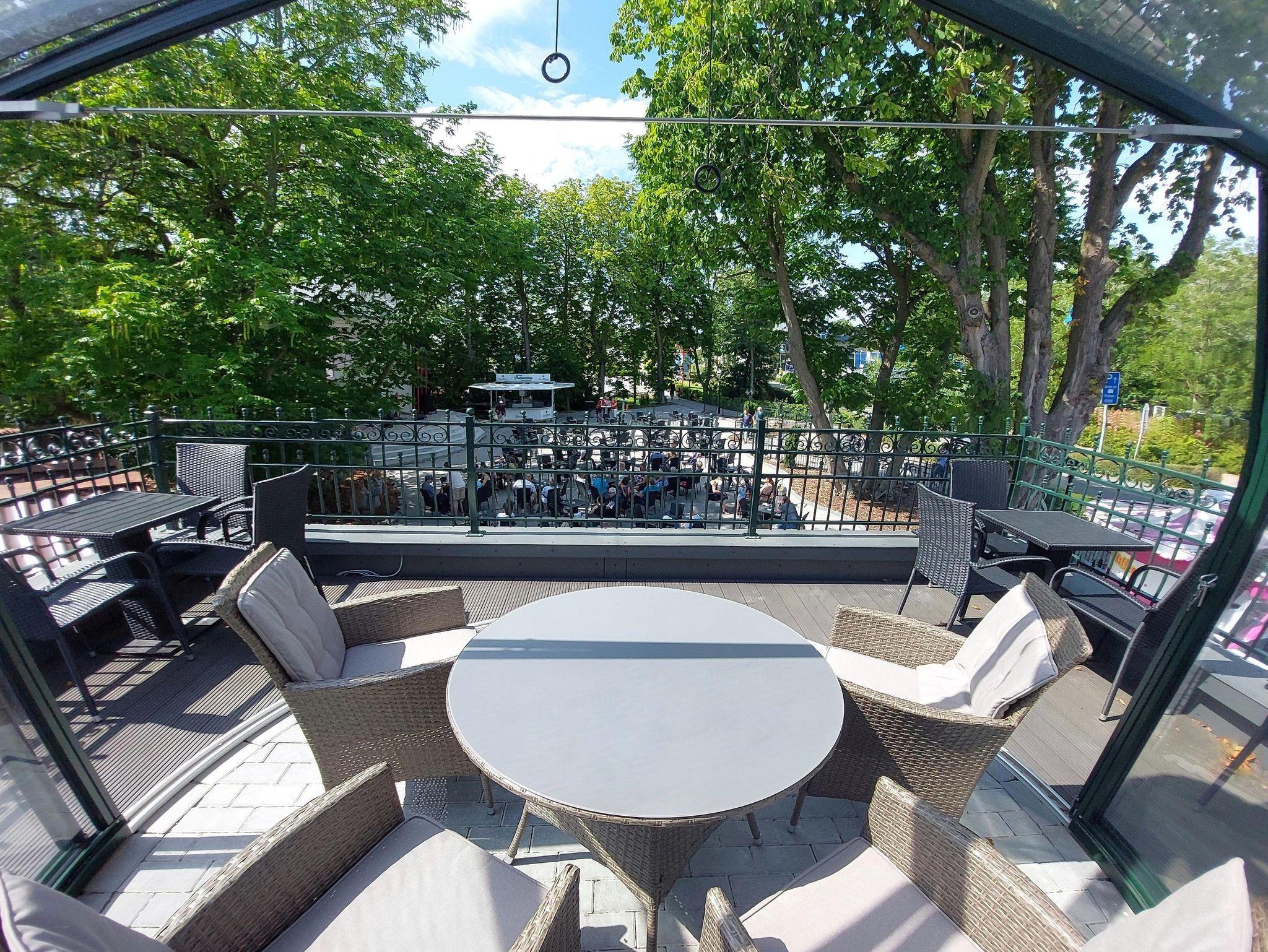 Unser Strandkorb-Zimmer verfügt über keine Küche oder größere Sitzecke. Gehen Sie gemütlich Essen oder holen Sie sich etwas von einem der umliegenden Restaurants und genießen Sie die Dachterasse mit Pavillon.
