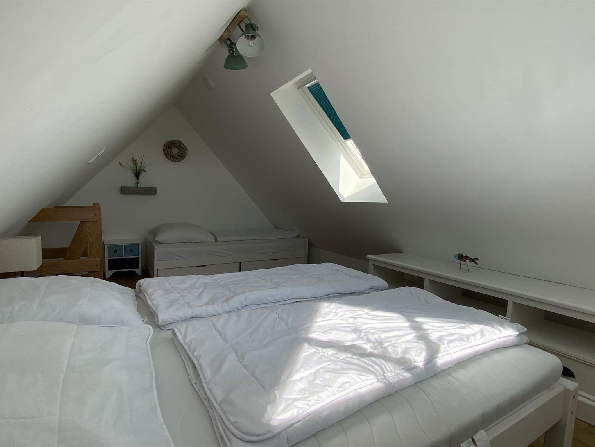 Ferien-Doppelhaushälfte 17 (80 m²) für bis zu 8 Personen im Erd-/Obergeschoss und Spitzboden (Zugang über eine steile Treppe)