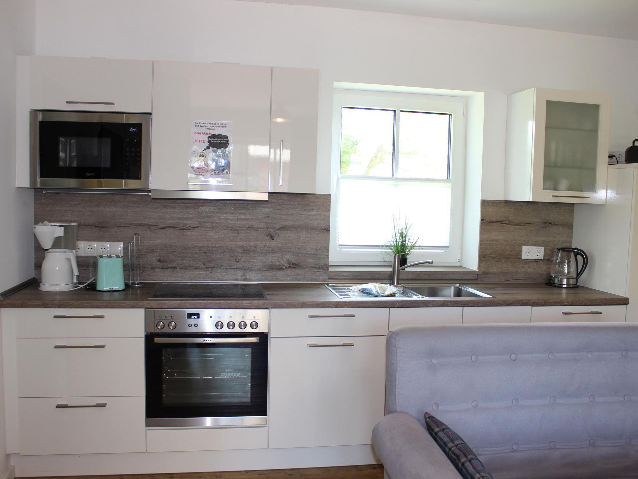 • Küche: Backofen, Herd, Mikrowelle, Kaffeemaschine, Toaster, Wasserkocher, Geschirr und Besteck, Geschirrspüler