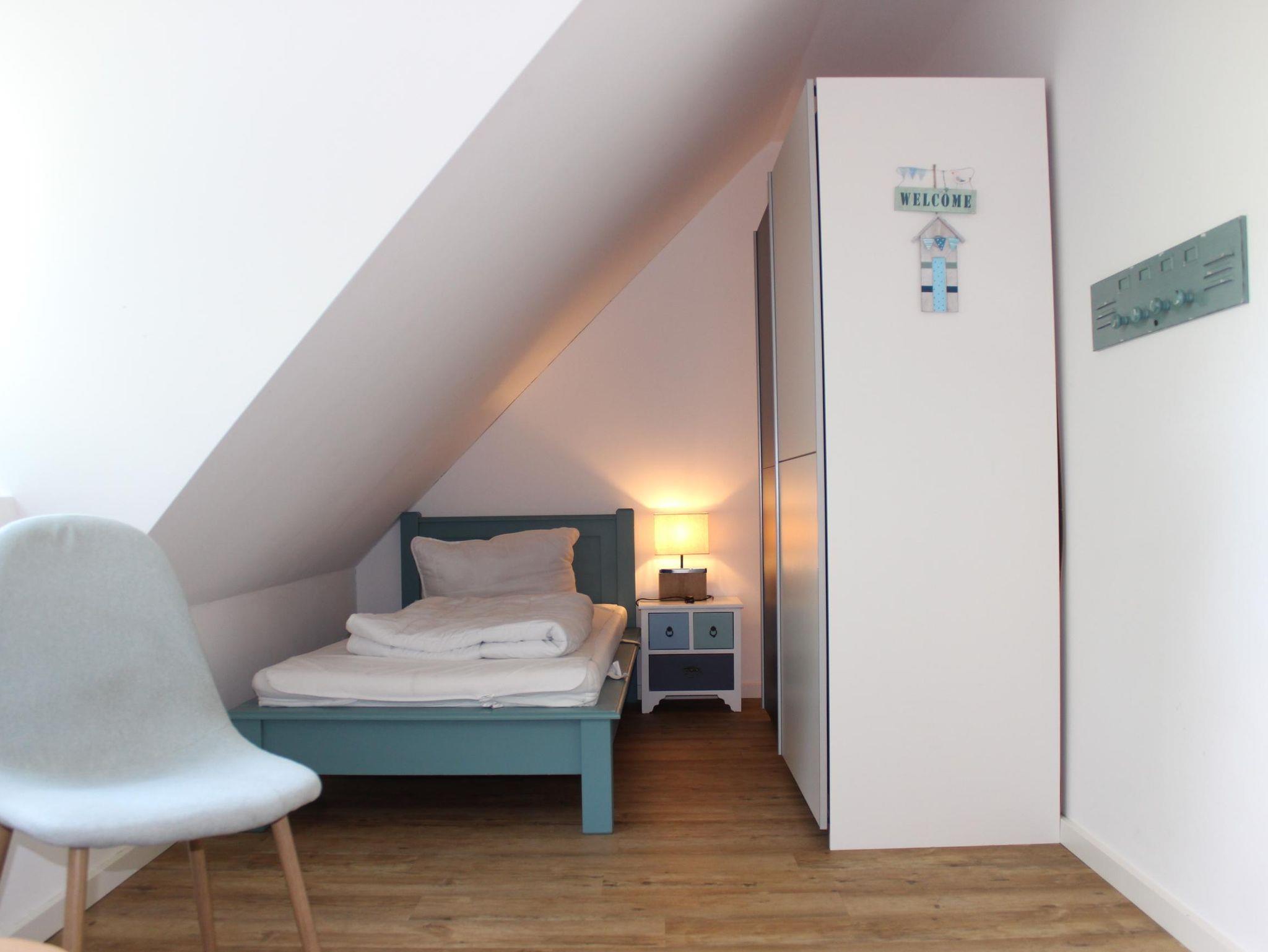 • 2 Schlafzimmer: ein Zimmer mit Doppelbett (1,80m x 2,00m), ein Zimmer mit zwei Einzelbetten (0,90m x 2,00m), Bettwäsche auf Wunsch (Fenster mit Plissees)