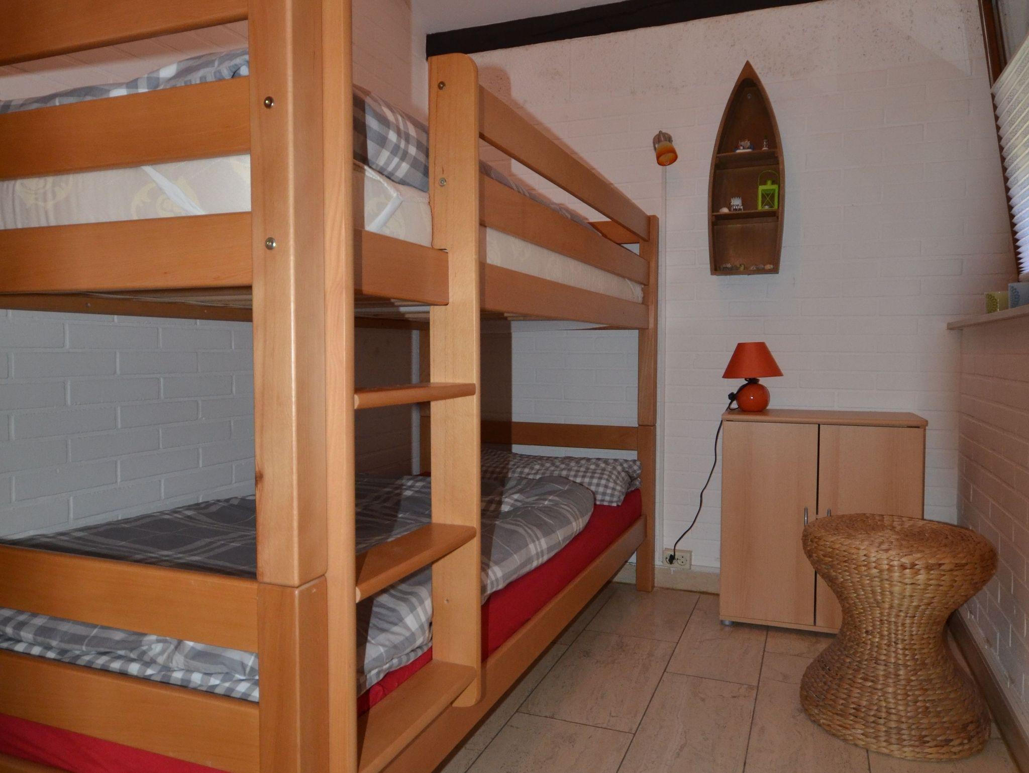 Im Kinderzimmer befindet sich ein Etagenbett, dass ebenfalls eine Länge von 2 Metern hat.