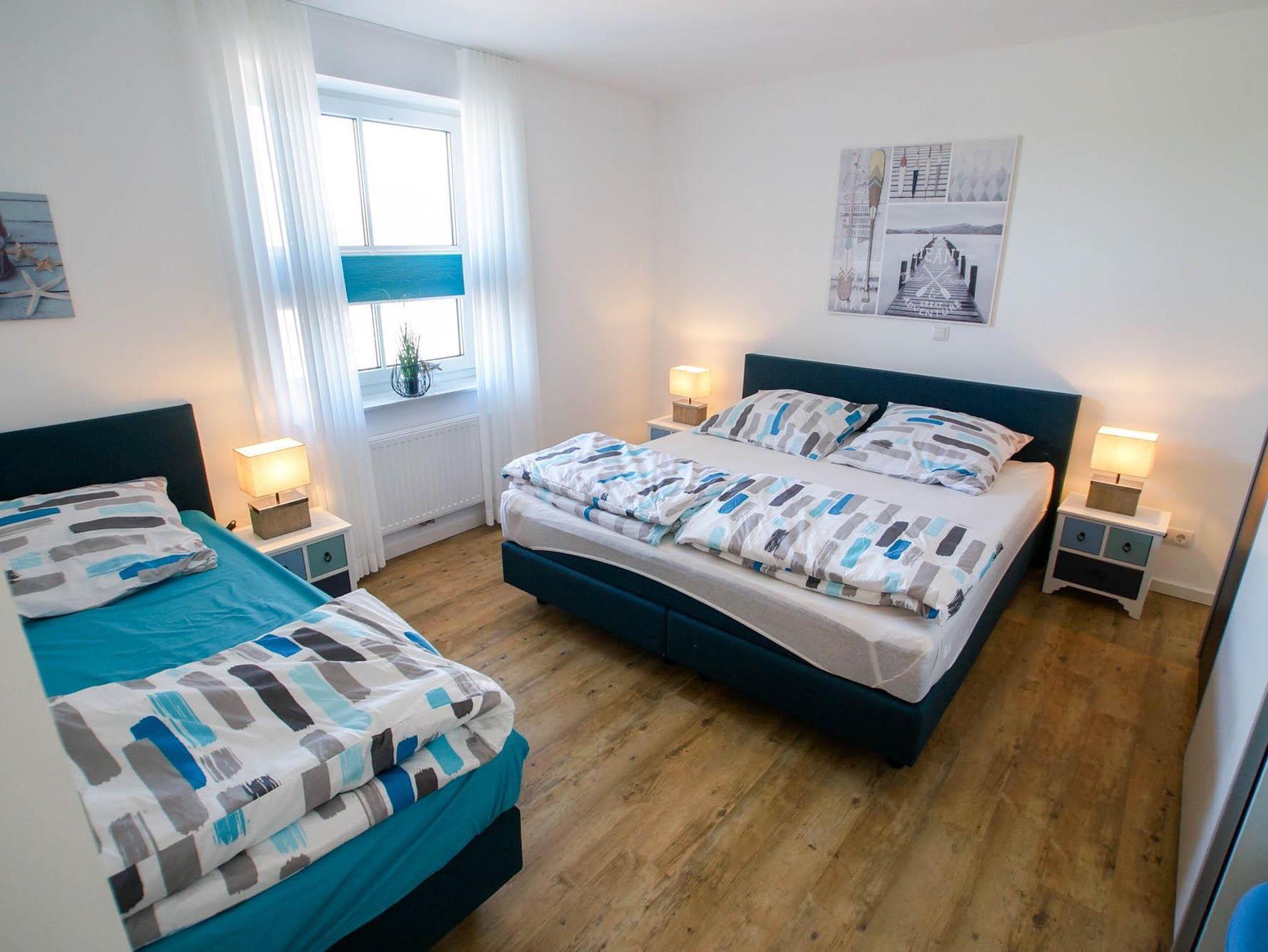 • 2 Schlafzimmer: ein Zimmer mit Doppelbett und Einzelbett, ein Einzelzimmer, Bettwäsche auf Wunsch (Fenster mit Plissees)