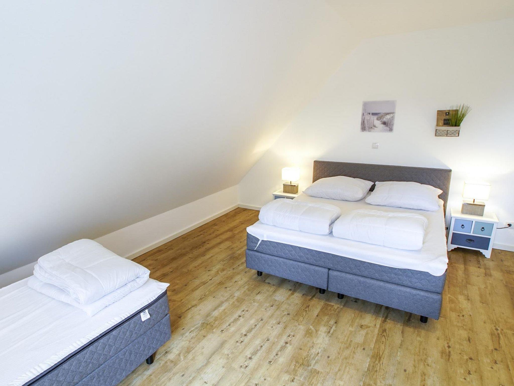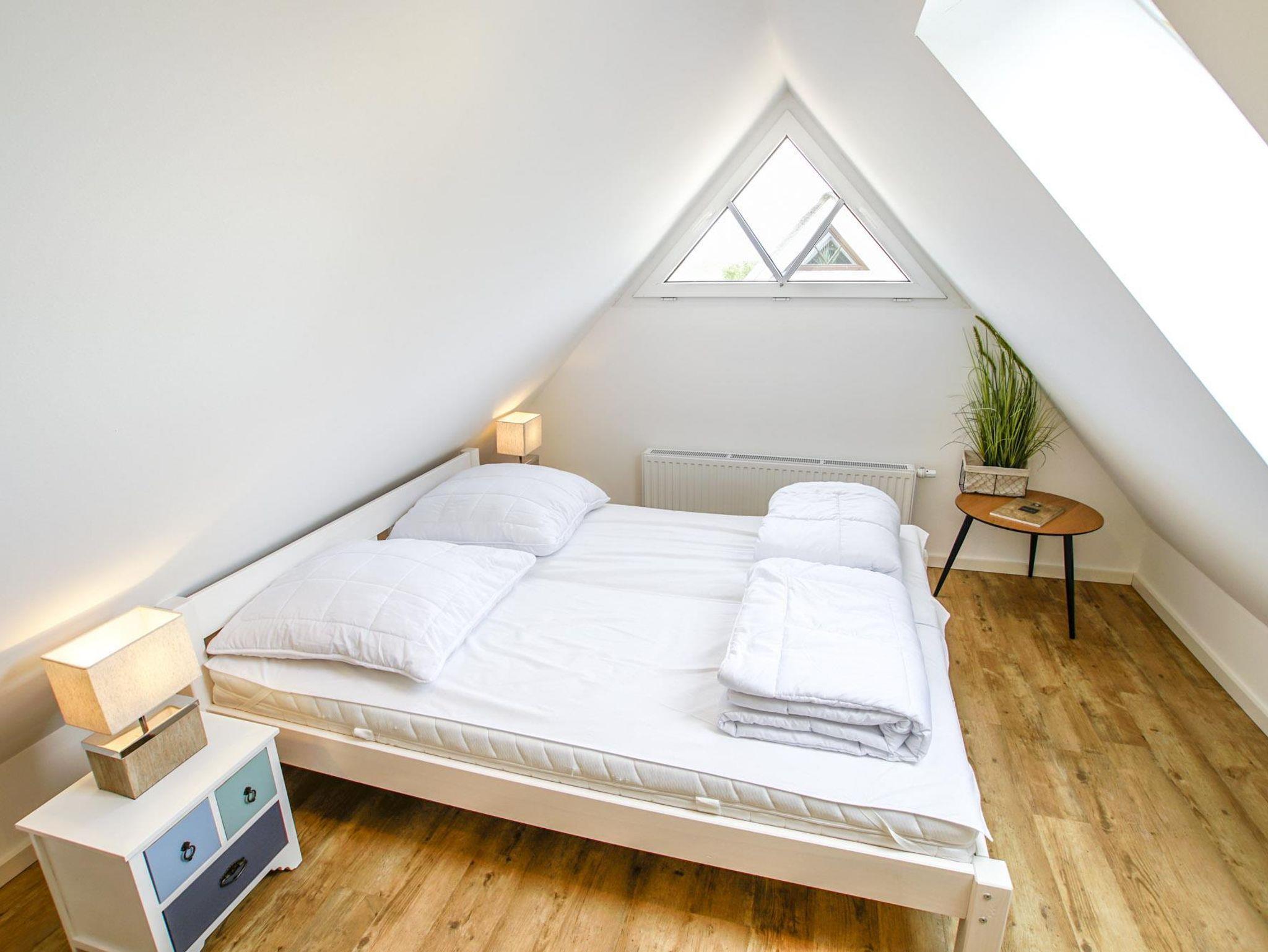 Ferien-Doppelhaushälfte 16 (80 m²) für bis zu 8 Personen im Erd-/Obergeschoss und Spitzboden (Zugang über eine steile Treppe)