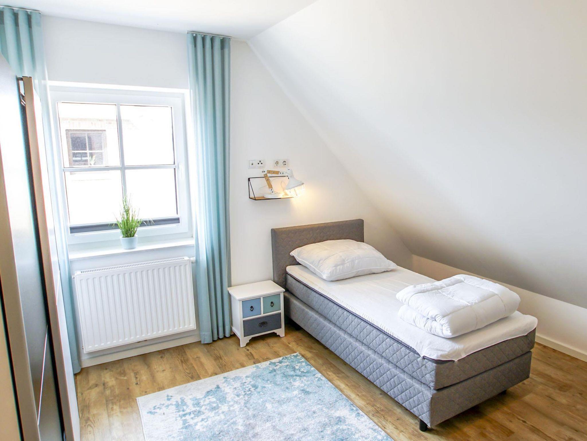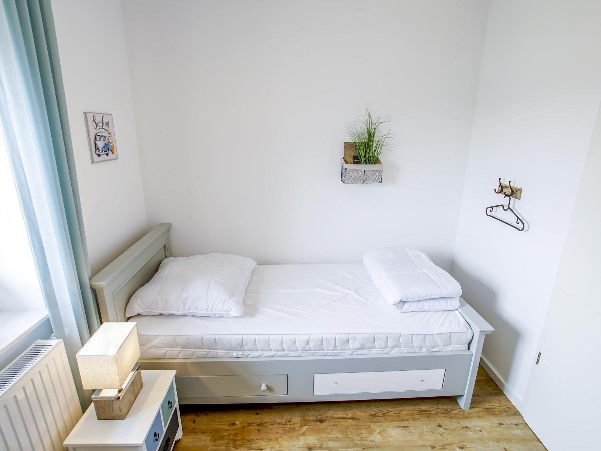 • 3 Schlafzimmer: ein Zimmer mit zwei Einzelbetten, zwei Zimmer mit einem Doppelbett und Zusatzbett, Bettwäsche auf Wunsch (Fenster mit Plissees)