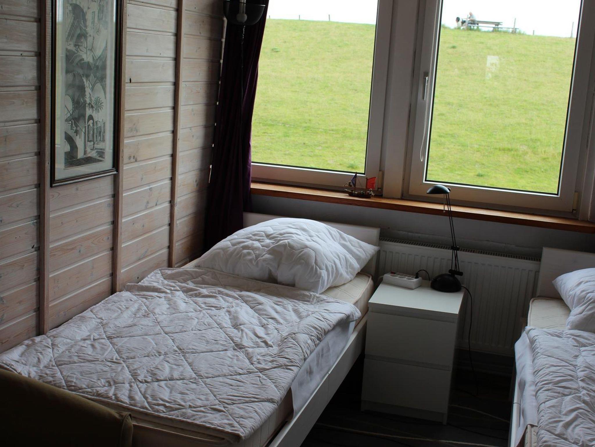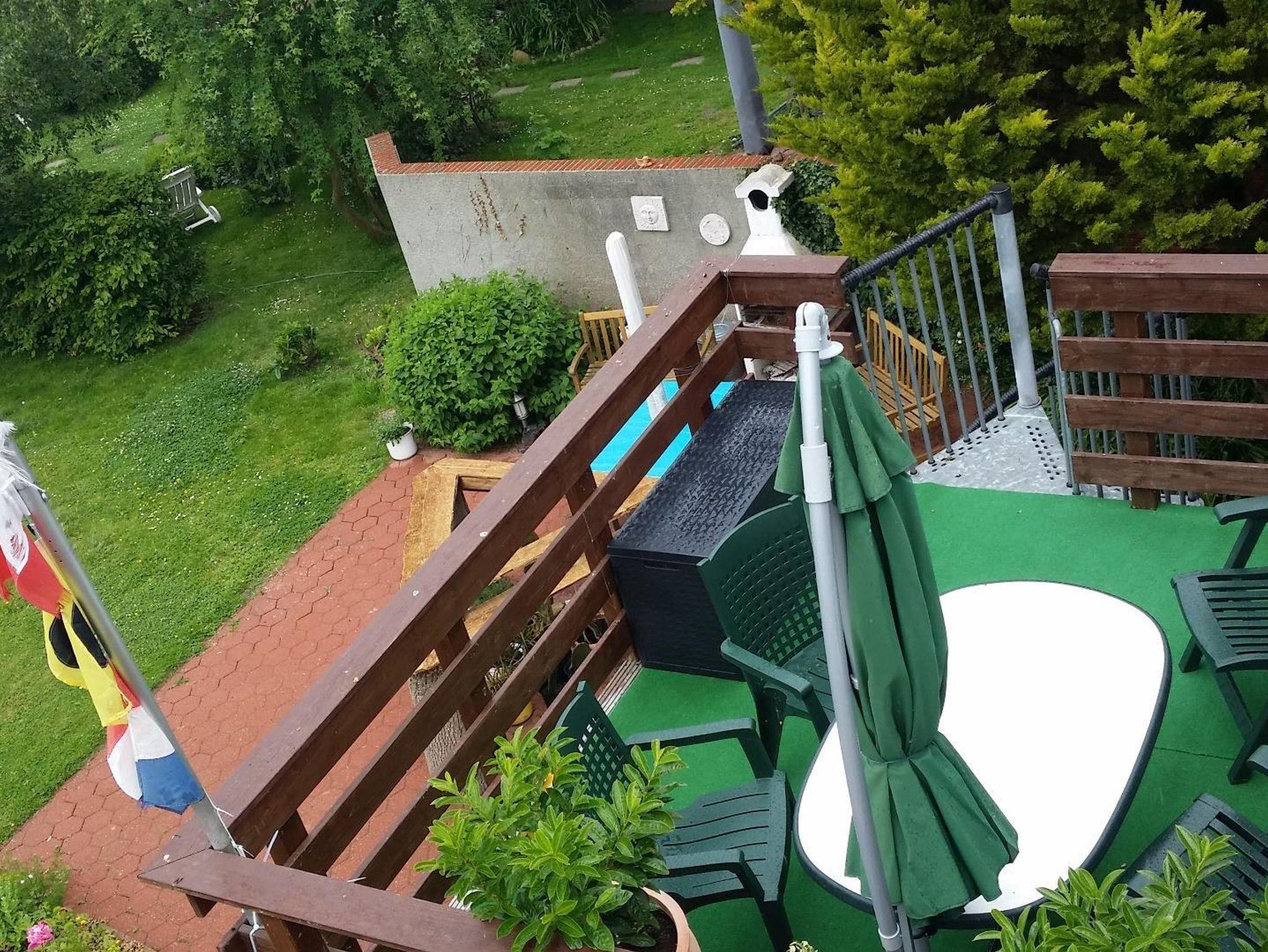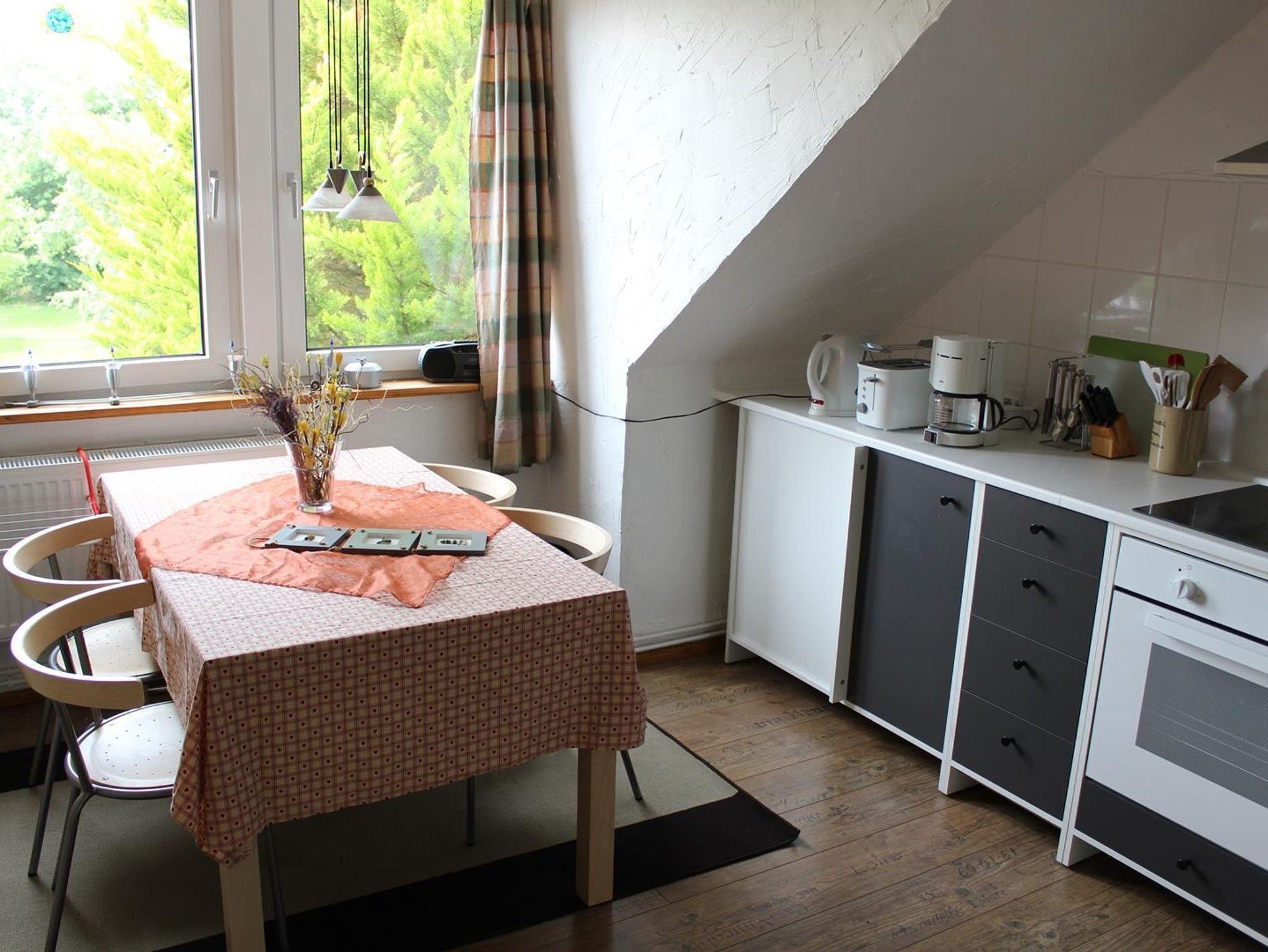Die sehr gemütliche und helle Ferienwohnung für 4 Personen liegt im Obergeschoss eines sehr schönen Hauses direkt am Deich. Sie hat ein Wohnzimmer mit einer Sitzecke, einem großen Flachbildschirm und einem Zugang auf den Balkon mit Sitzmöglichkeiten für 4 Personen und einer Wendeltreppe in den großen Garten. Die voll ausgestattete Küche hat eine Essecke und eine Küchenzeile mit Backofen, Geschirrspüler, Mikrowelle, Kaffeemaschine, Wasserkocher und Toaster. Die 2 Schlafzimmer haben beide jeweils 2 Einzelbetten und einen Schrank mit genügend Platz. Das kleine Duschbad hat ein Waschtisch, Dusche und WC.