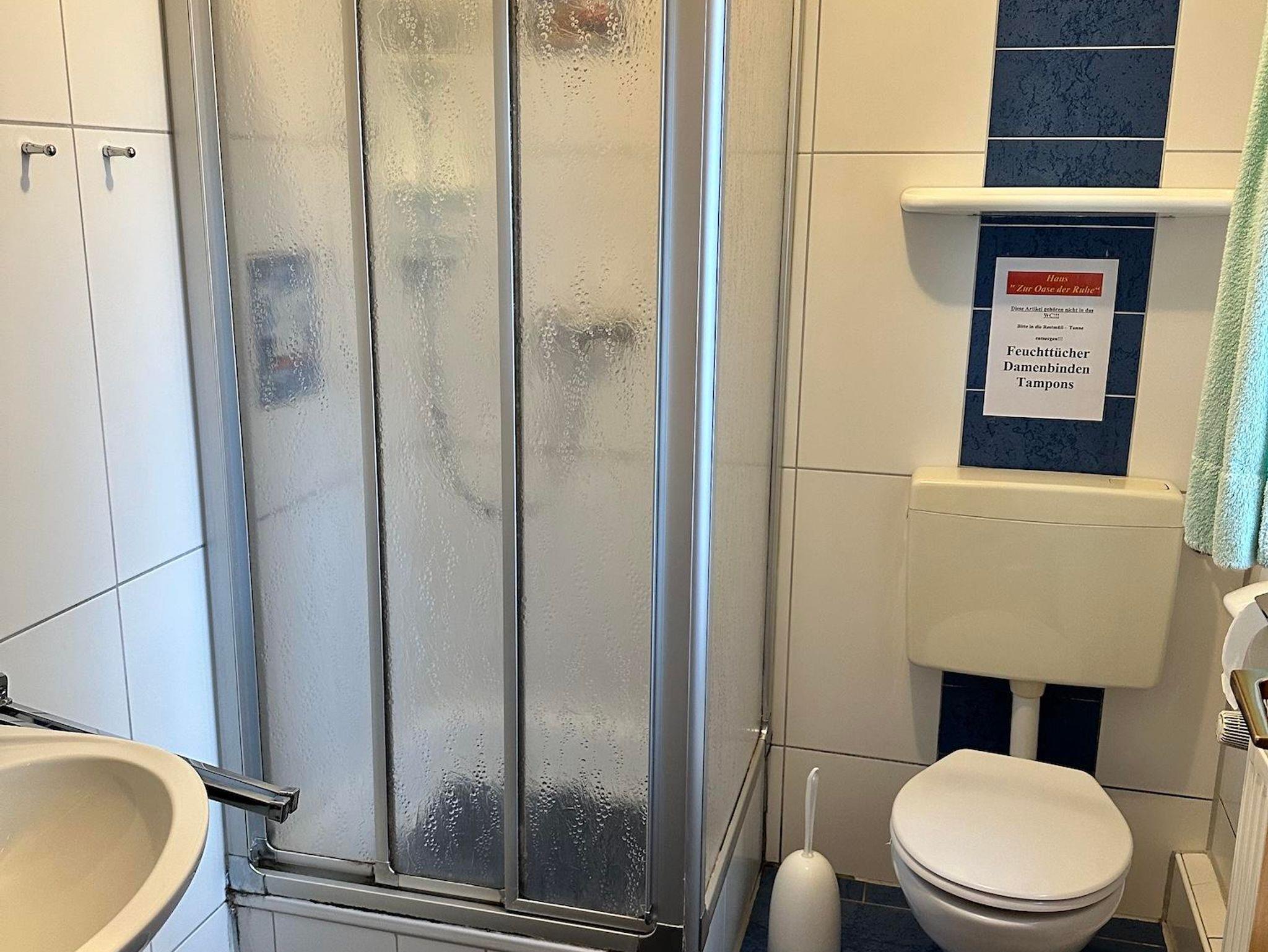 Bad mit Dusche / WC u. div. Utensilien