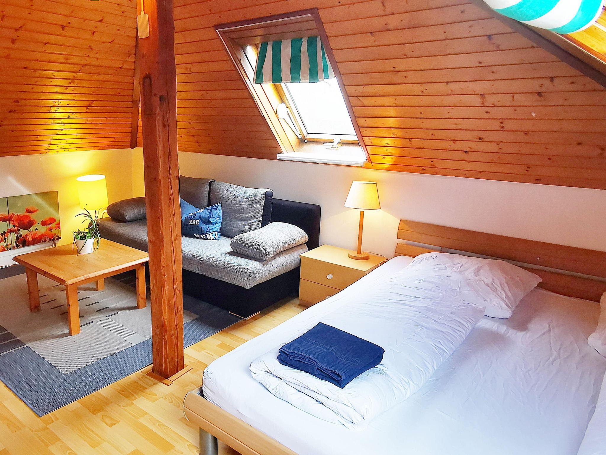 1 Schlafzimmer mit Doppelbett für 2 Personen und eine Schlafcouch für 2 Personen