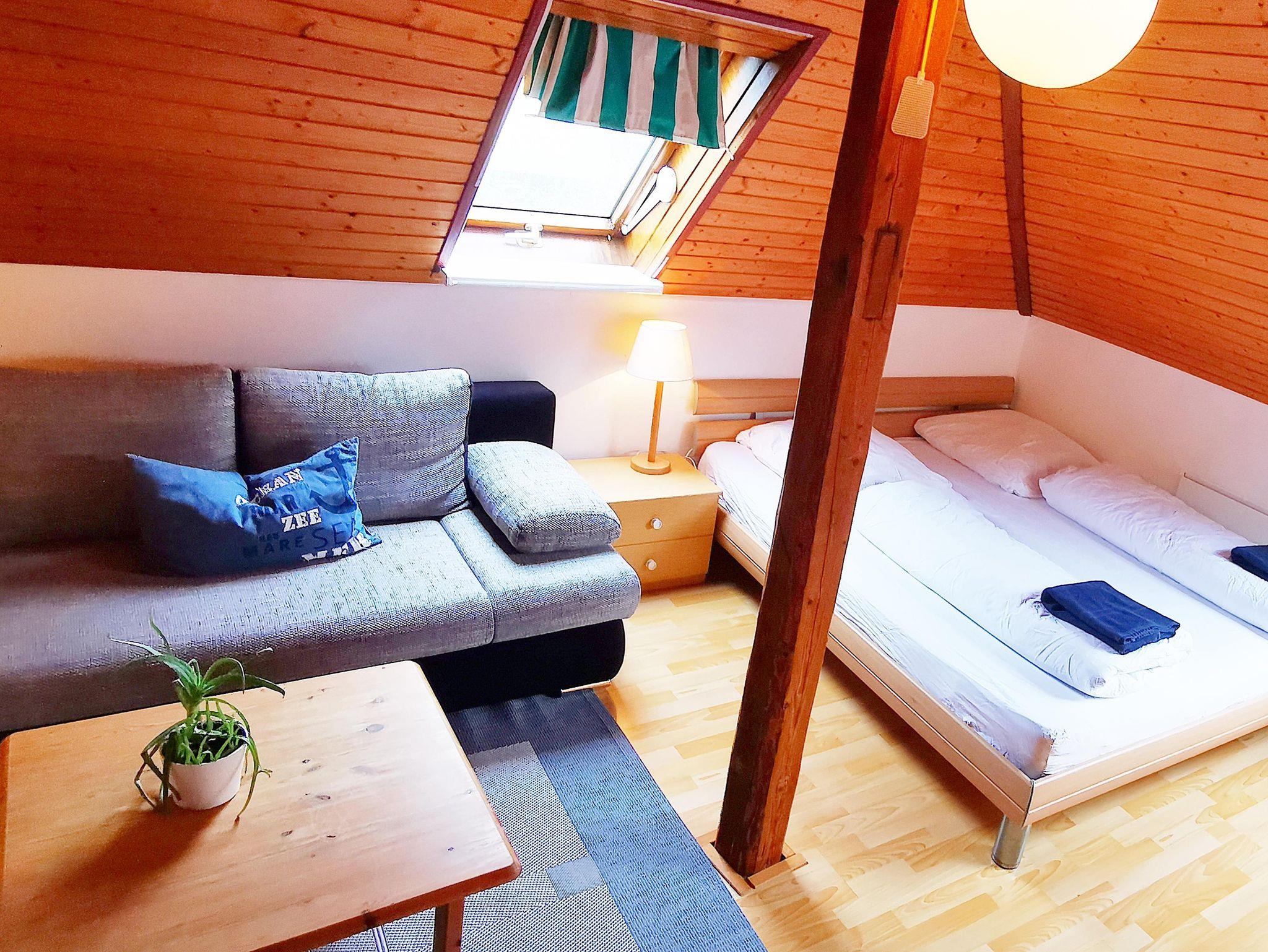 1 Wohnzimmer mit Schlafcouch für 2 Personen