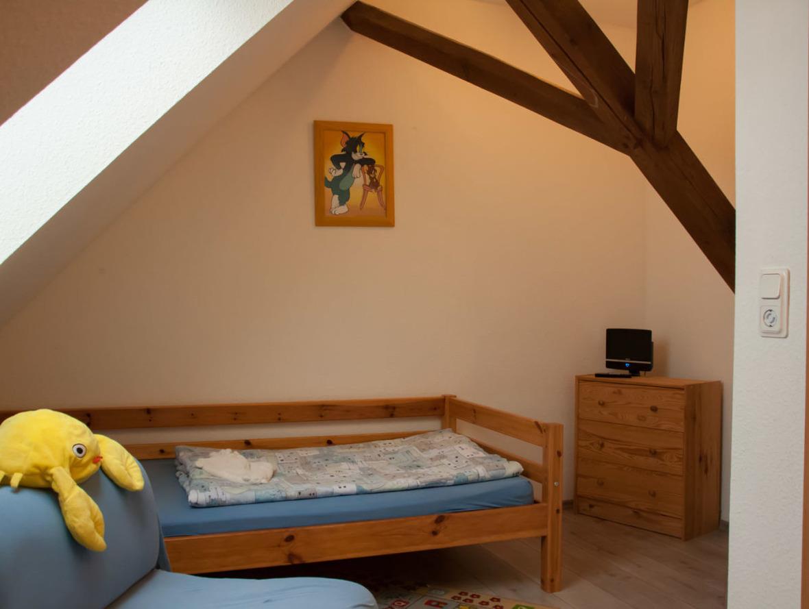 Unsere Ferienwohnung 2 im Obergeschoss ist ca. 75 qm groß und komplett mit Laminat ausgelegt. Das Wohn- Esszimmer mit Küchenbereich ist ca. 30 qm groß. Im Wohnbereich finden Sie ein großes Kuschelsofa, einen Fernseher mit DVB-T Empfang und ein CD Radio mit Kassettendecks. Vom Wohnzimmer aus kann man z.B. dem Kind auf dem Spielplatz zusehen und selbst auf dem Sofa relaxen. Die Küchenzeile ist ausgestattet mit Geschirrspüler, Backofen, E-Herd mit Ceranfeld, Kühlschrank, Mikrowelle, Wasserkocher, Kaffeemaschine und ausreichend Geschirr, Töpfen und Besteck. Im Essbereich befindet sich ein großzügiger Esstisch - hier kann man nach endlosen Spaziergängen am Meer herrlich Puzzeln, Spielen oder natürlich auch Essen. Ein Kinderhochstuhl ist vorhanden. Das Kinderzimmer ist mit zwei Einzelbetten ausgestattet, einmal 90 x 190 cm und 90x200cm. Im ca. 20 qm großen Schlafzimmer steht ein 2 x 2 m großes Doppelbett mit Matratzen in Härtegrad 3 ( 2009 erneuert ). Ferner befindet sich hier ein Wäscheschrank. und auch ein TV mit DVB-T. Das komplett geflieste und rund 15 qm große Badezimmer ist ausgestattet mit Dusche, WC und Waschbecken - ebenfalls finden Sie hier einen Handtuchtrockner für Ihre Handtücher. Ein Kinderbett ( Reisebett ) ist in der Wohnung ebenfalls vorhanden und kann genutzt werden. Auch hier ist ein Festnetzanschluss möglich.