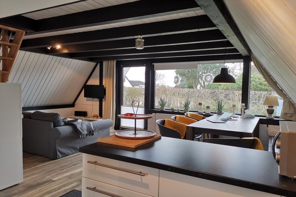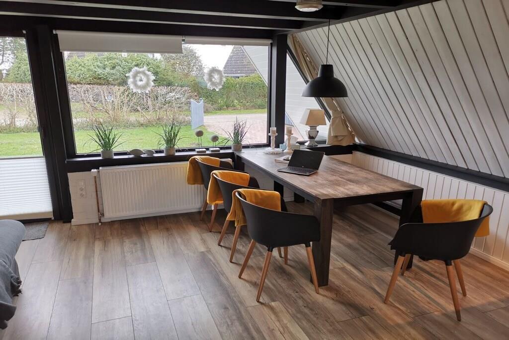 In dem gepflegten Wohngebiet "Achtern Diek" liegt unser freistehendes Nurdachhaus mit ca. 350m² Grundstück und unmittelbarer Nähe zu Deich und Küste. Das familienfreundliche Ferienhaus wurde Ende 2017 komplett saniert und in 2018 liebevoll möbliert und eingerichtet. Im Erdgeschoss befindet sich eine offene Küche und ein moderner Wohnraum mit einer Schlafcouch. Das ebenfalls im Erdgeschoss befindliche moderne Bad ist mit einer ebenerdigen Dusche ausgestattet. Im Obergeschoss befinden sich zwei gemütliche Schlafräume mit Doppelbett bzw. zwei Einzelbetten. Die große Fensterfront im Erdgeschoß verleiht dem Inneren des Hauses eine lichte, freundliche Atmosphäre und bietet auch in der kalten Jahreszeit einen Platz zum Entspannen. Der Garten lädt zum Grillen und Sonnenbaden ein.