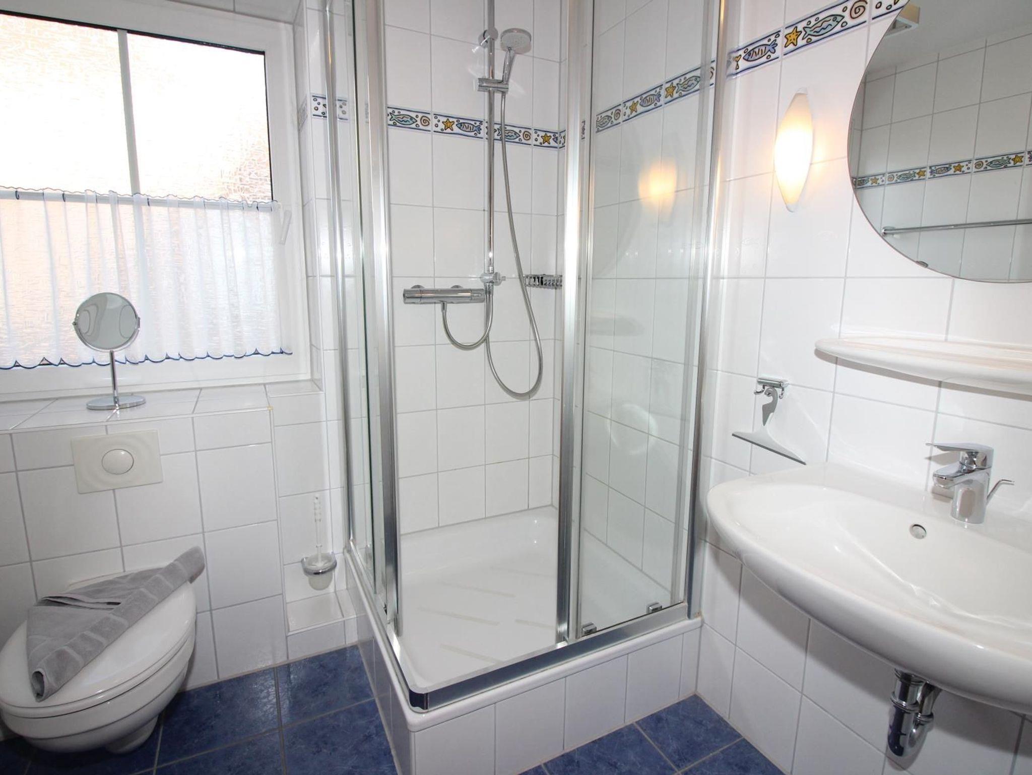 Bad mit Regendusche und WC, Föhn, Tritthocker, WC-Aufsatz