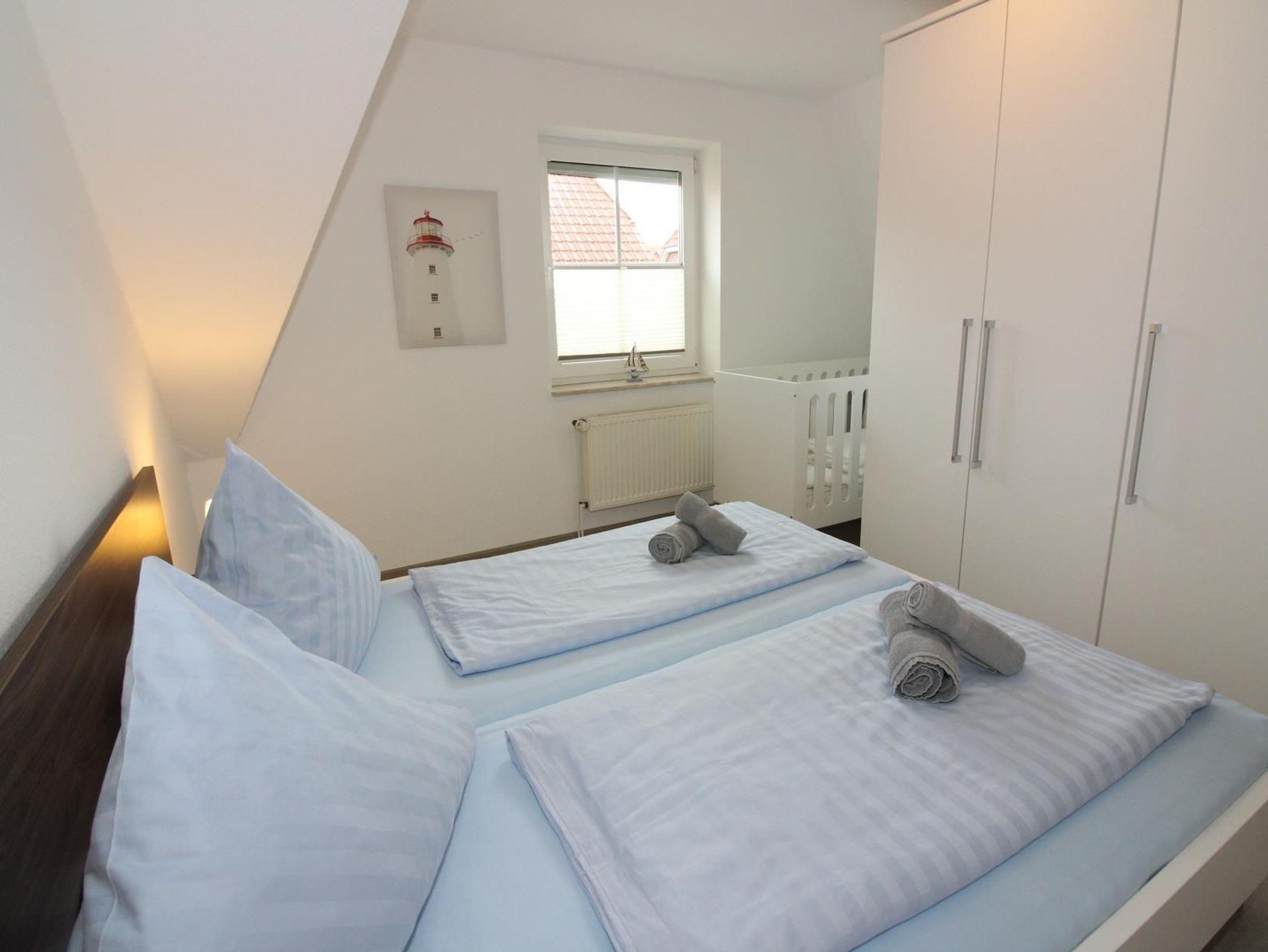 - Schlafzimmer mit Doppelbett, großem Kleiderschrank und Kinderbett (kein Reisebett)