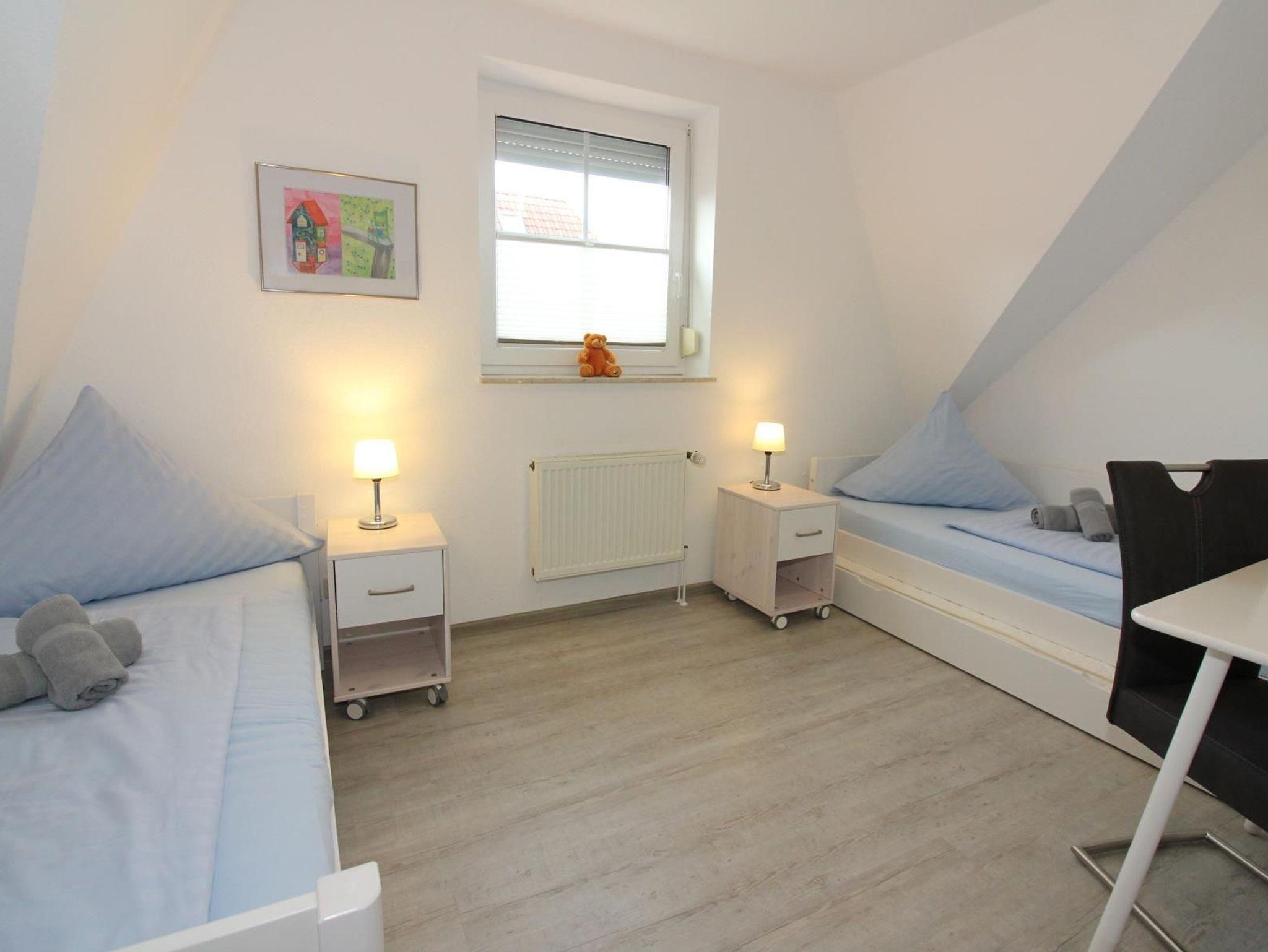 - Schlafzimmer mit 2 Einzelbetten zusätzlichem Ausziehbett, Schreibplatz, LCD-Fernseher (ebenfalls mit Sky Empfang), DVD Player