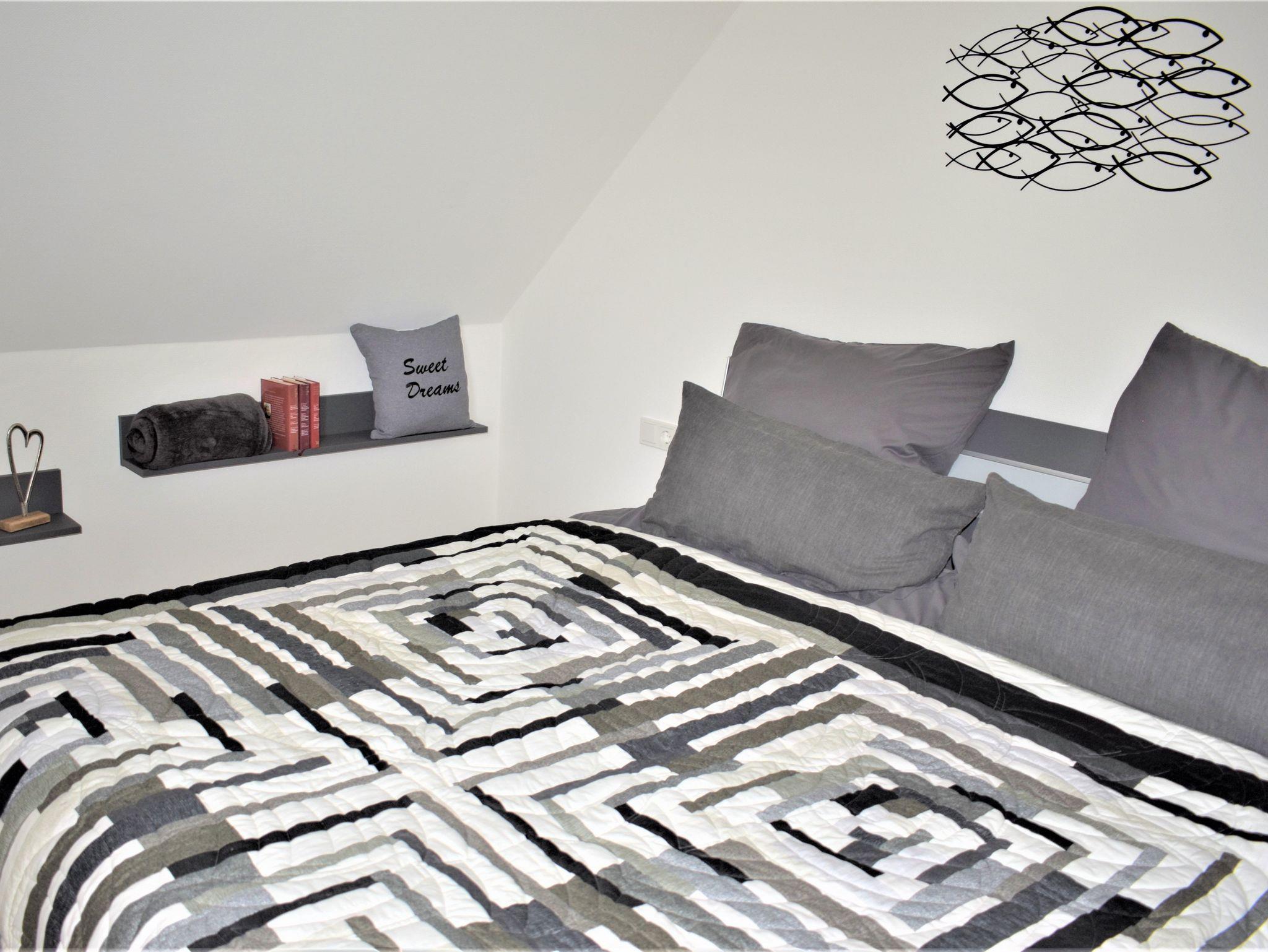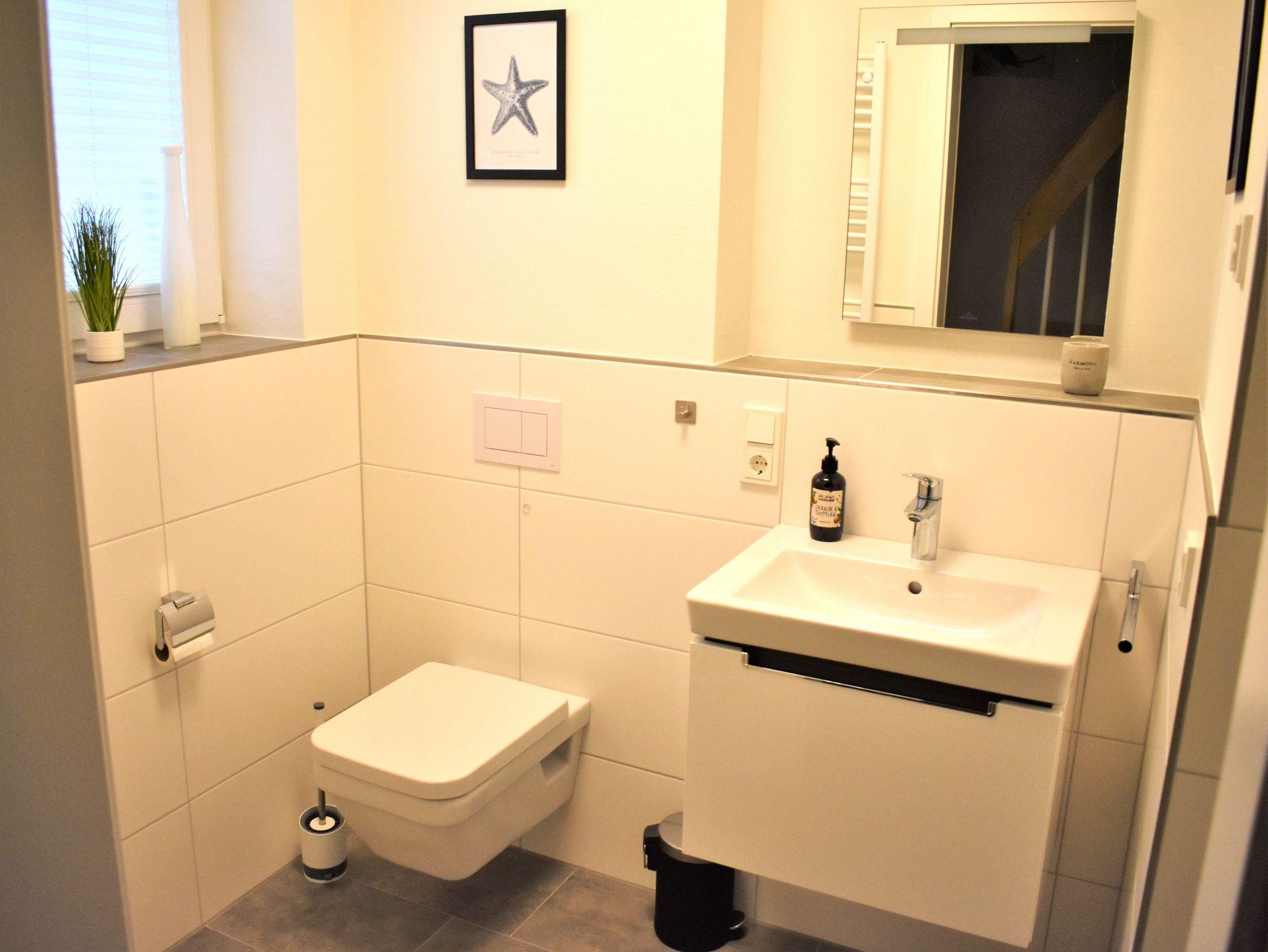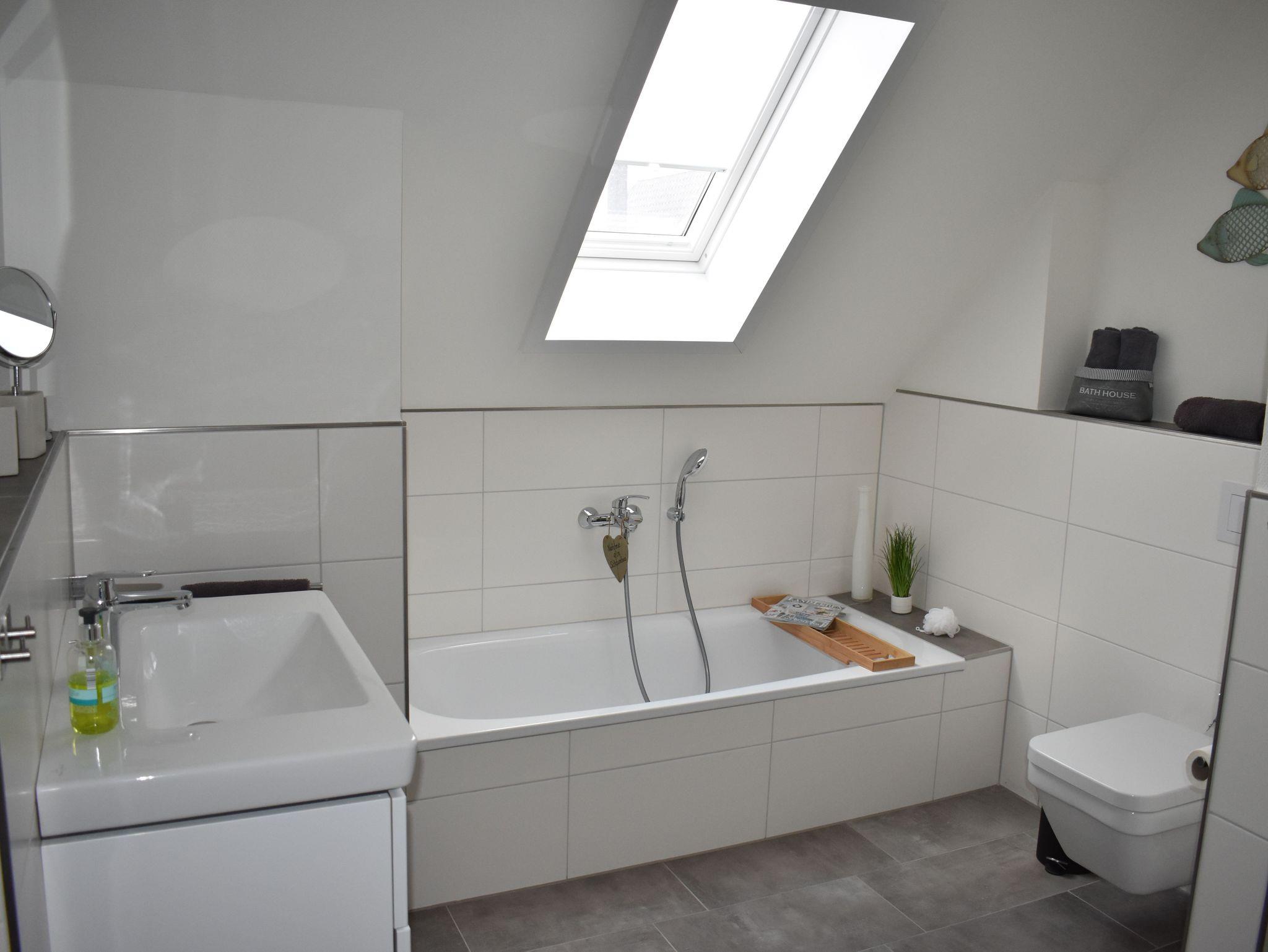Im oberen und unteren Bereich befindet sich jeweils ein Badezimmer mit ebenerdiger Dusche, die viel Bewegungsfreiheit bieten. Das geräumige Badezimmer im Obergeschoss mit einer eingelassenen Badewanne und einer Sauna für bis zu vier Personen garantiert Ihnen zusätzliche Entspannungsmöglichkeiten. Es warten 3 Schlafzimmer mit Komfortbetten und TV auf Sie und laden zum Verweilen ein.