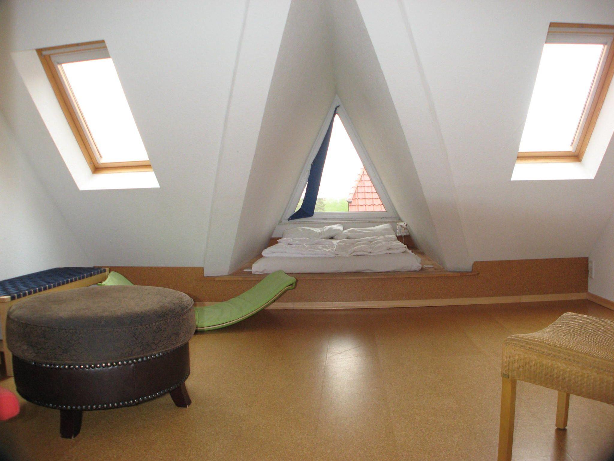 -besteck, -tritthocker, Steckdosensicherung und Treppengitter im Dachgeschoss sind vorhanden. Dort oben,