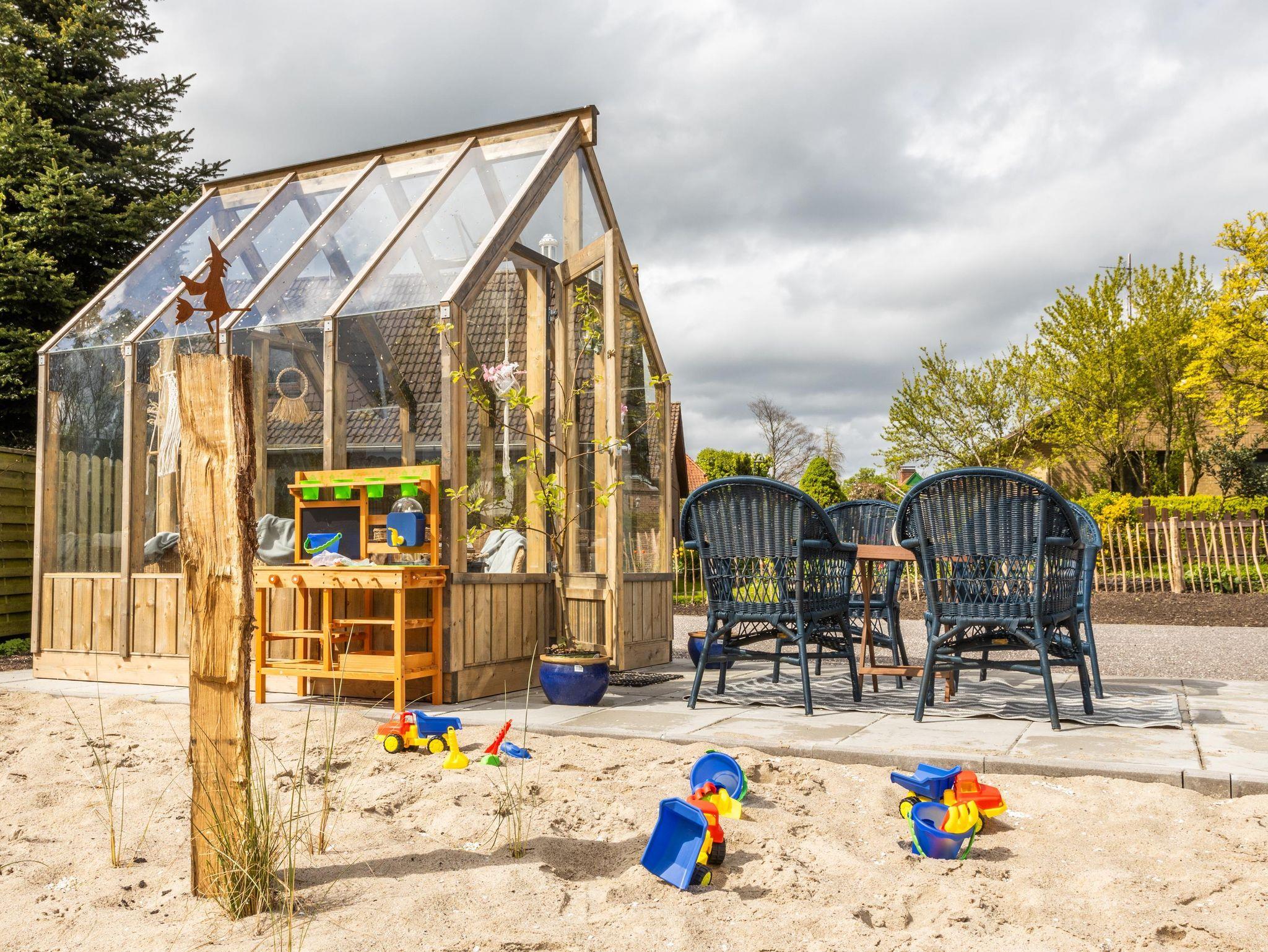 • Glashaus mit Sitzgelegenheit
