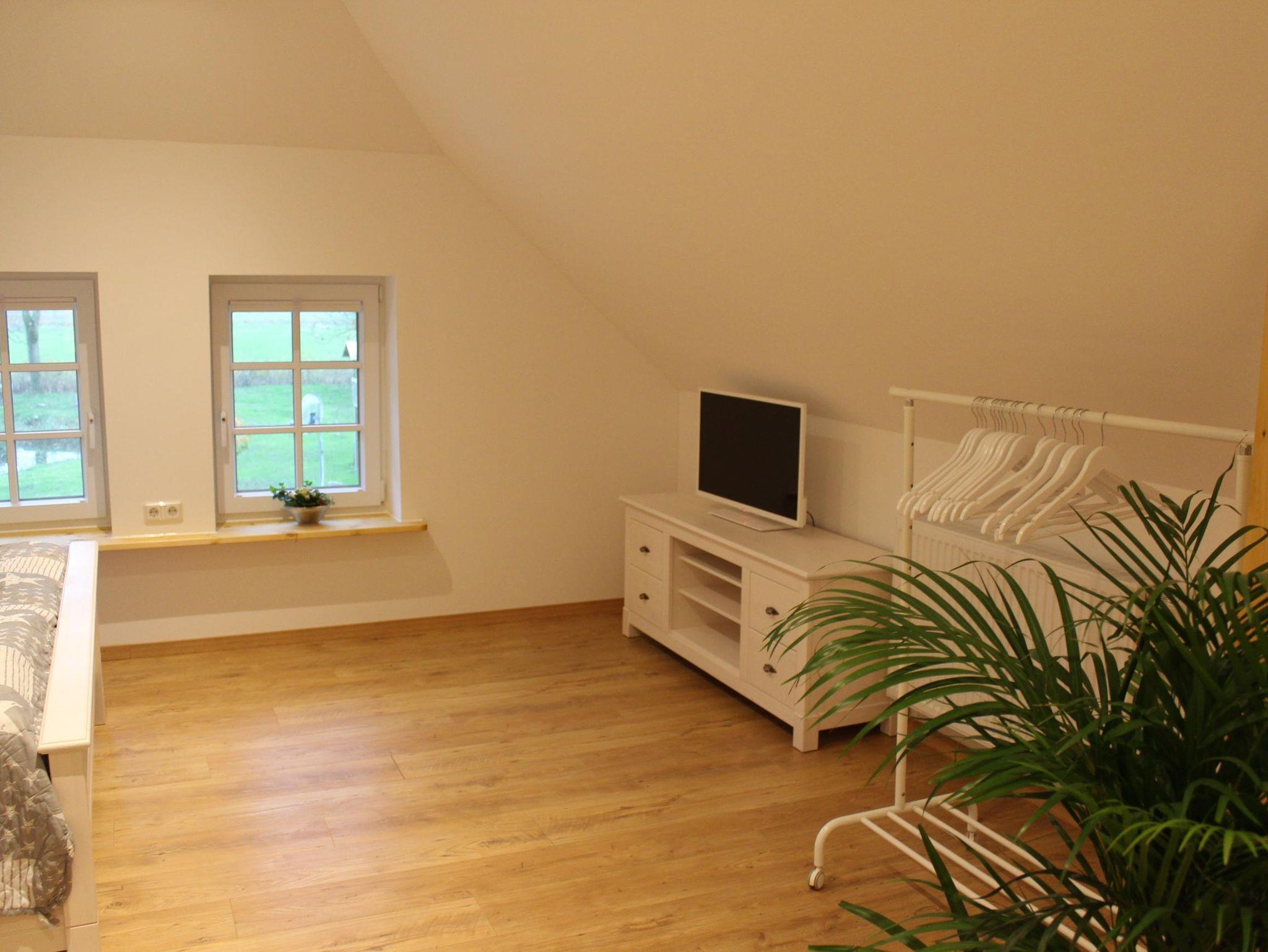 Die renovierte und modern eingerichtete Ferienwohnung DEICHHAUS befindet sich im Dachgeschoss eines Einfamilienhauses und bietet auf einer Wohnfläche von 40 m² Platz für 2 Personen. Die helle 1-Zimmer-Wohnung ist mit einem Doppelbett sowie einer gemütlichen Sitzecke, einem Fernseher und einer Küchenzeile ausgestattet, die über einen Kühlschrank, ein 2-Platten-Kochfeld, einen kleinen Backofen, Wasserkocher und Toaster verfügt. Das Bad ist mit Dusche und WC ausgestattet. Durch die Lage der Wohnung haben Sie einen tollen Blick auf den Deich sowie in die grüne Landschaft. Der große Garten steht Ihnen zur Mitnutzung zur Verfügung.