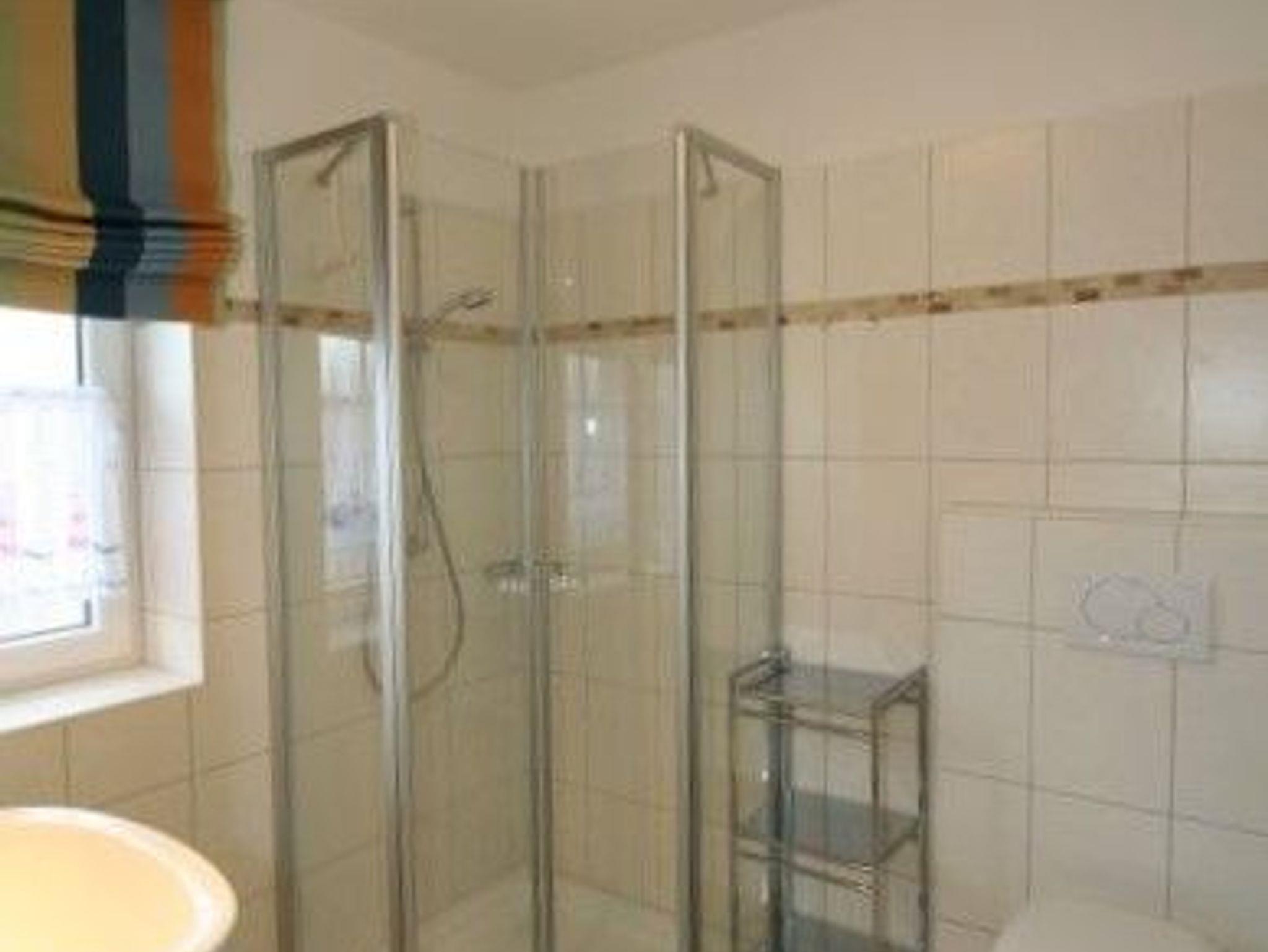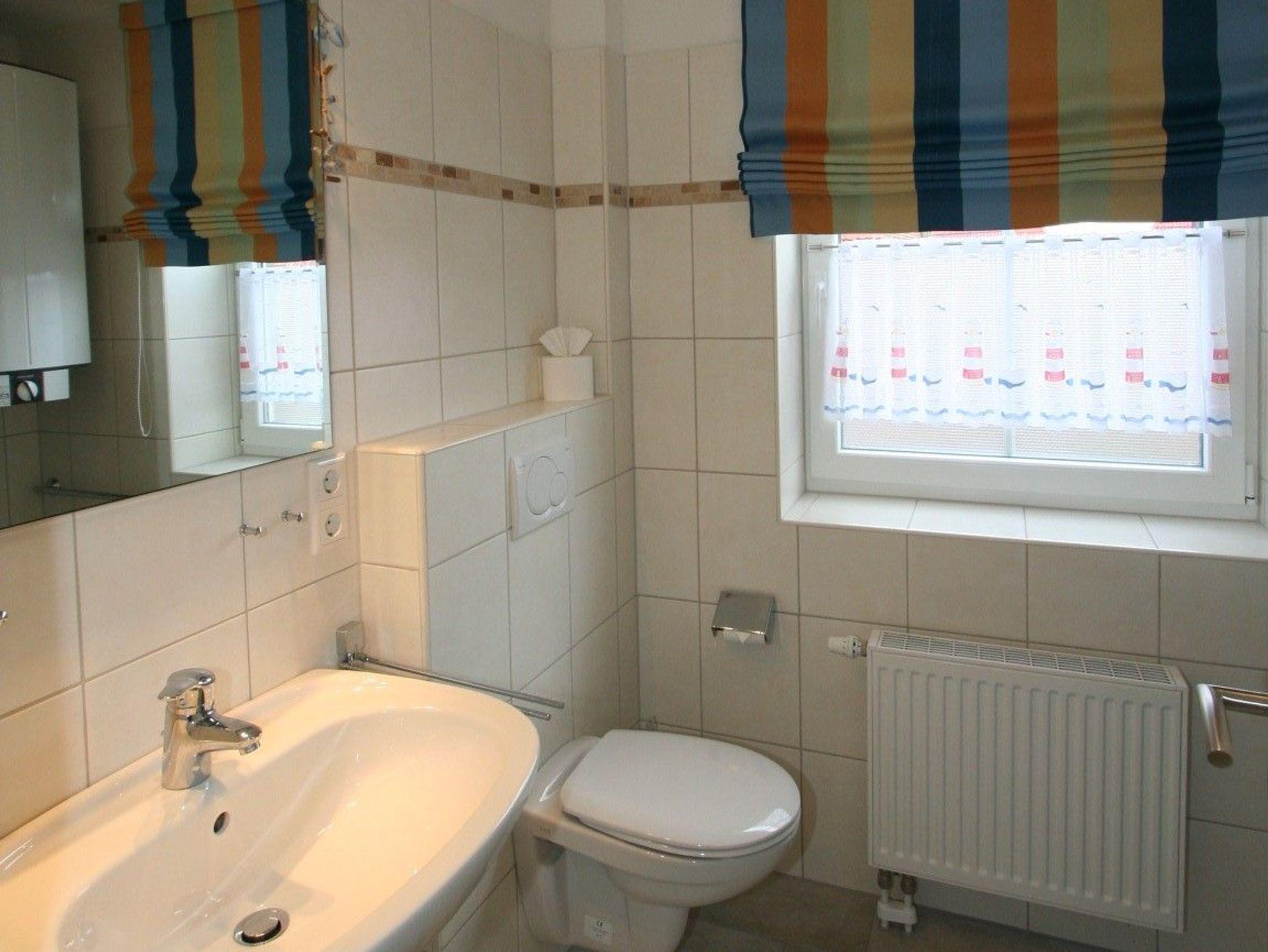 Großzügiges Bad inkl. Dusche mit flachem Einstieg sowie ausreichenden Abstellmöglichkeiten.