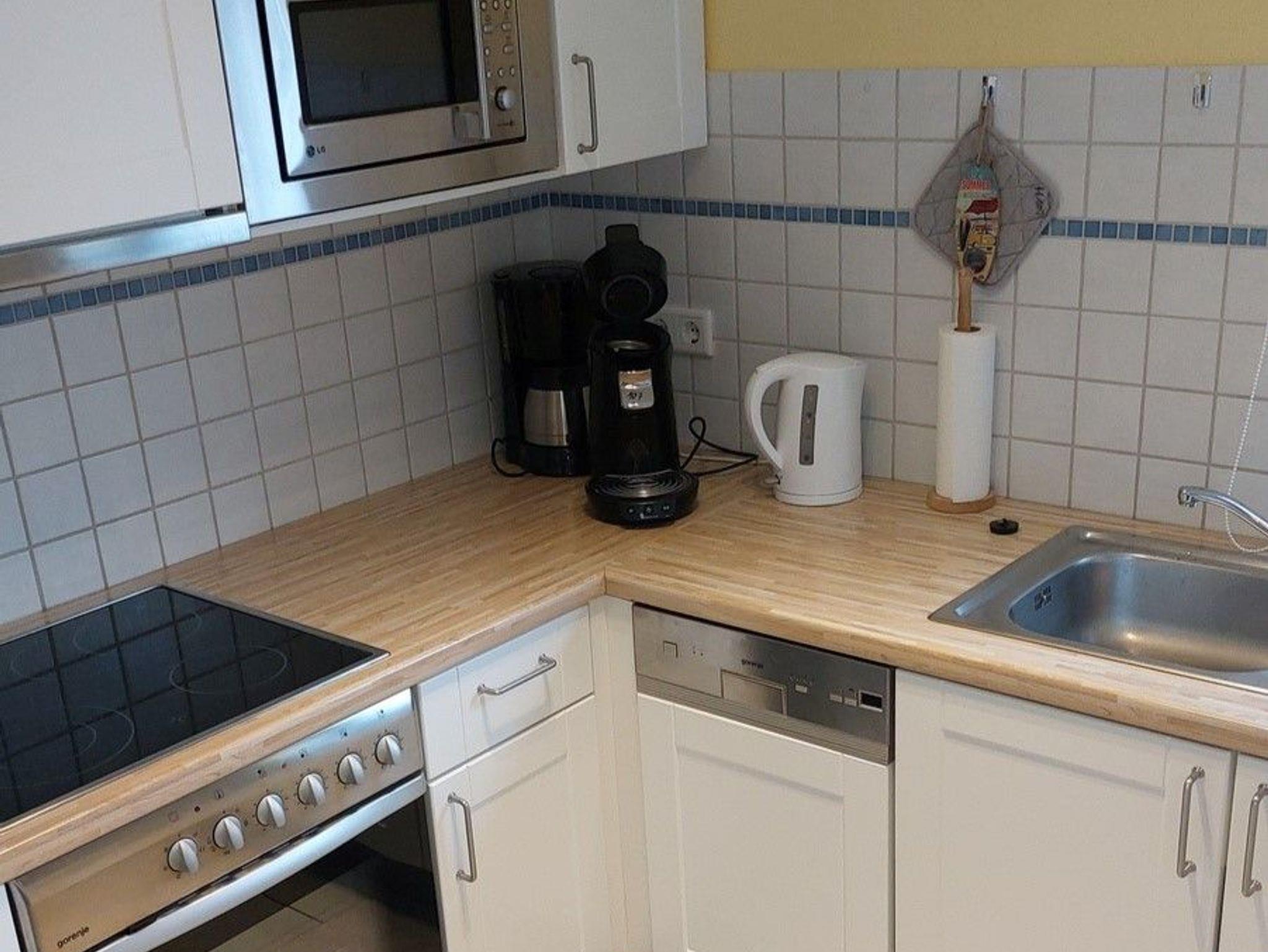 Vollständig ausgestattete Küche, Backofen mit Ceranfeld, Geschirrspüler, Mikrowelle, Kaffeemaschine, Pad Maschine (Senseo) Toaster, Eier- und Wasserkocher, alle notwendigen Utensilien + viele Extras vorhanden.