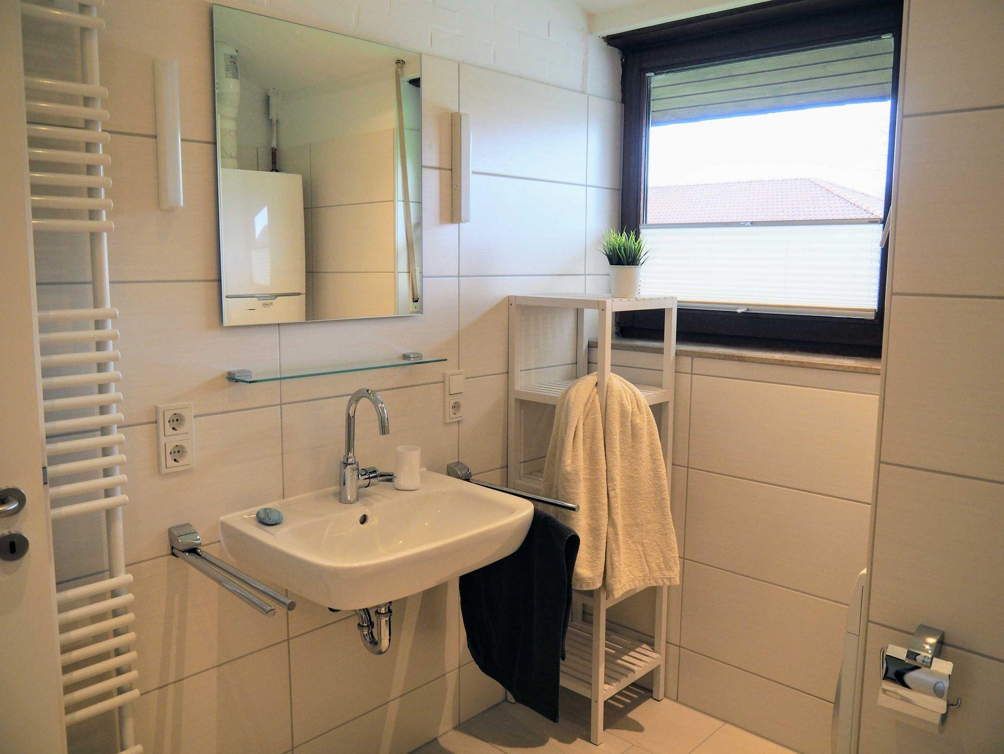 Bad mit Dusche, WC, Waschmaschine, Handtuchheizkörper