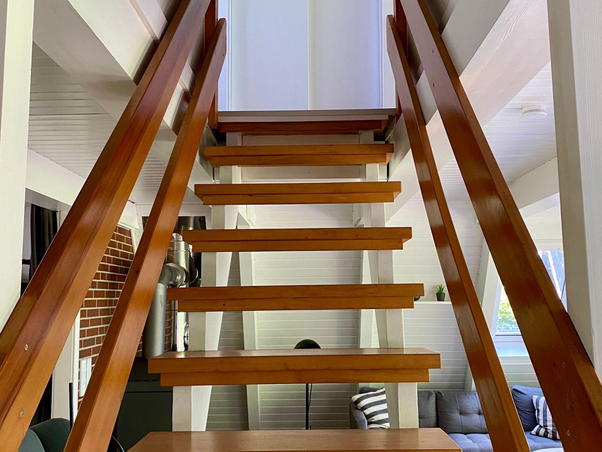 Über eine solide Treppe erreicht ihr das Obergeschoss, hier befinden sich zwei Schlafzimmer