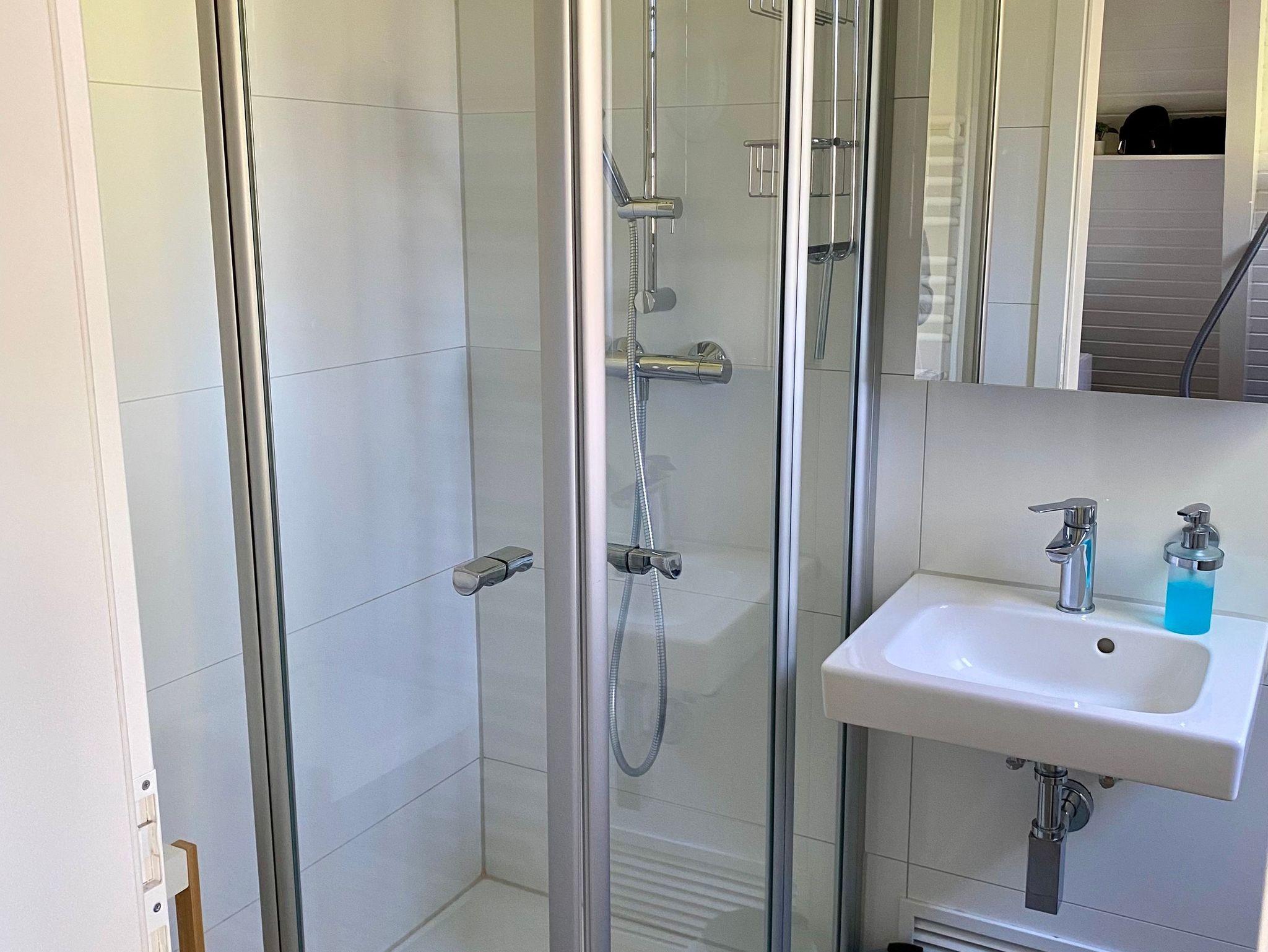 befindet sich ein Vorhang, der bei Bedarf zugezogen werden kann.