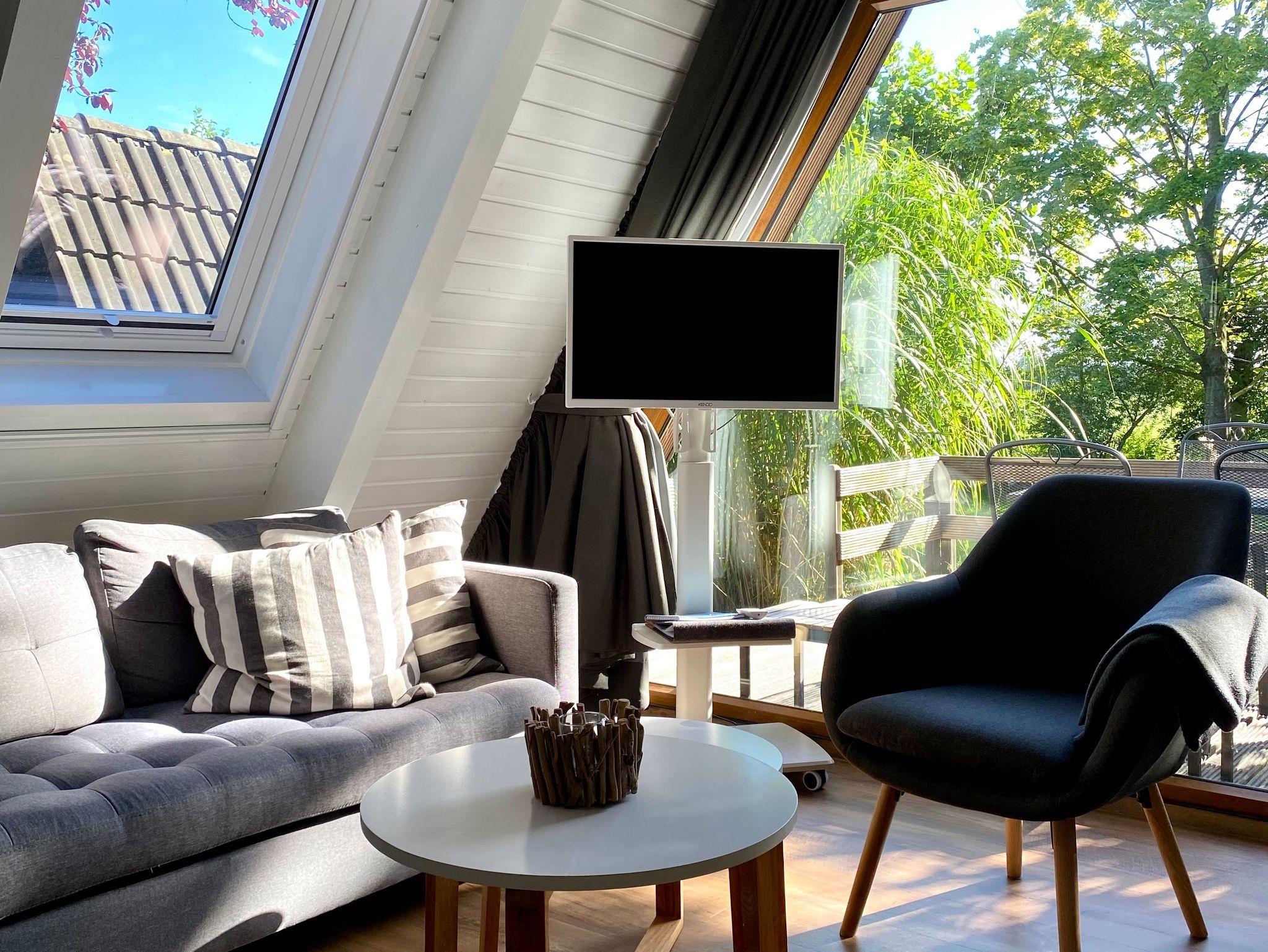 ihr sie einfach zur Seite schieben könnt, wenn der Fernseher den Blick in den Garten nicht