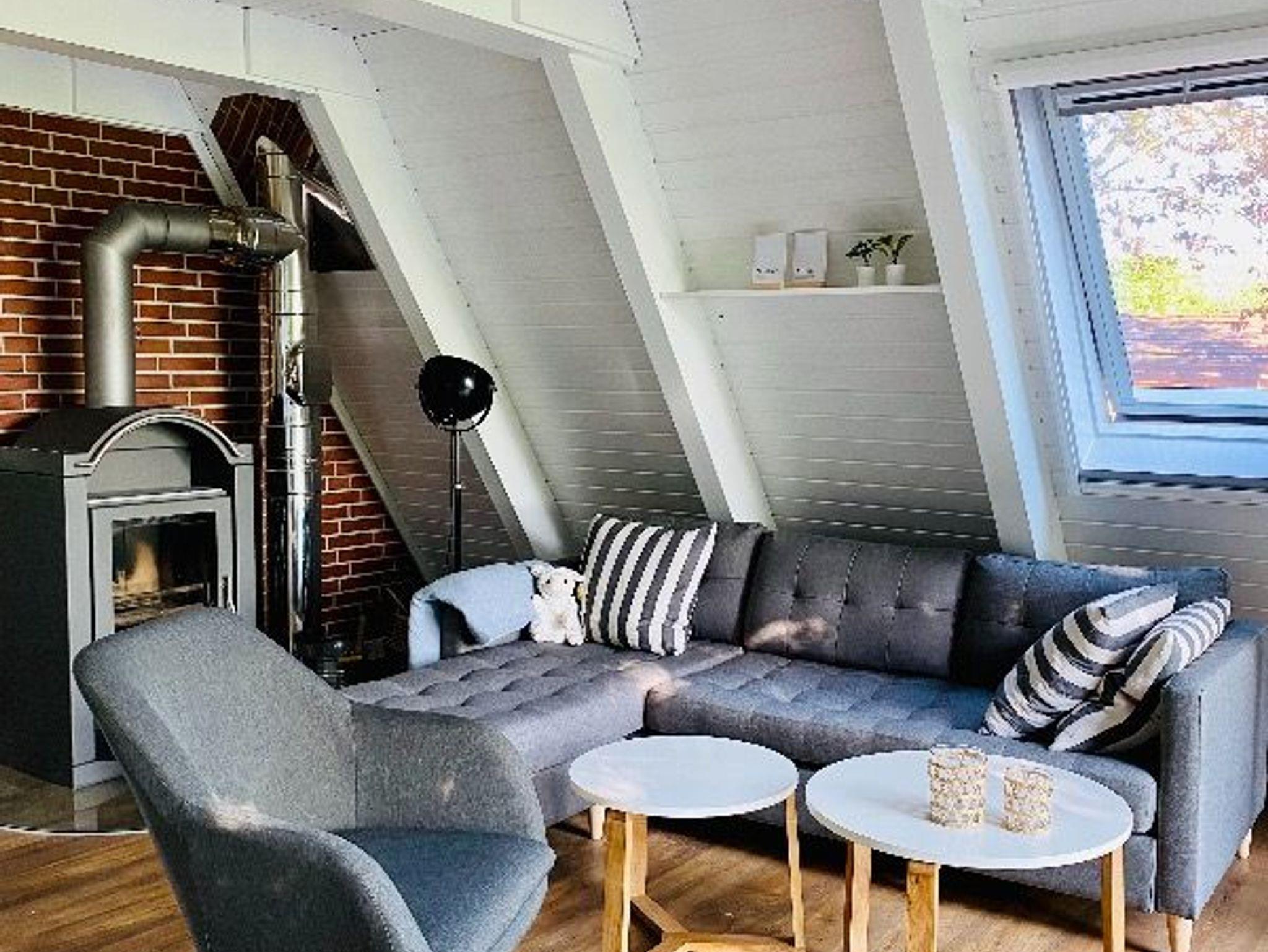 Gemütlichkeit mag, wird sich hier wohlfühlen: Der Wohn- und Essbereich ist weiß und grau