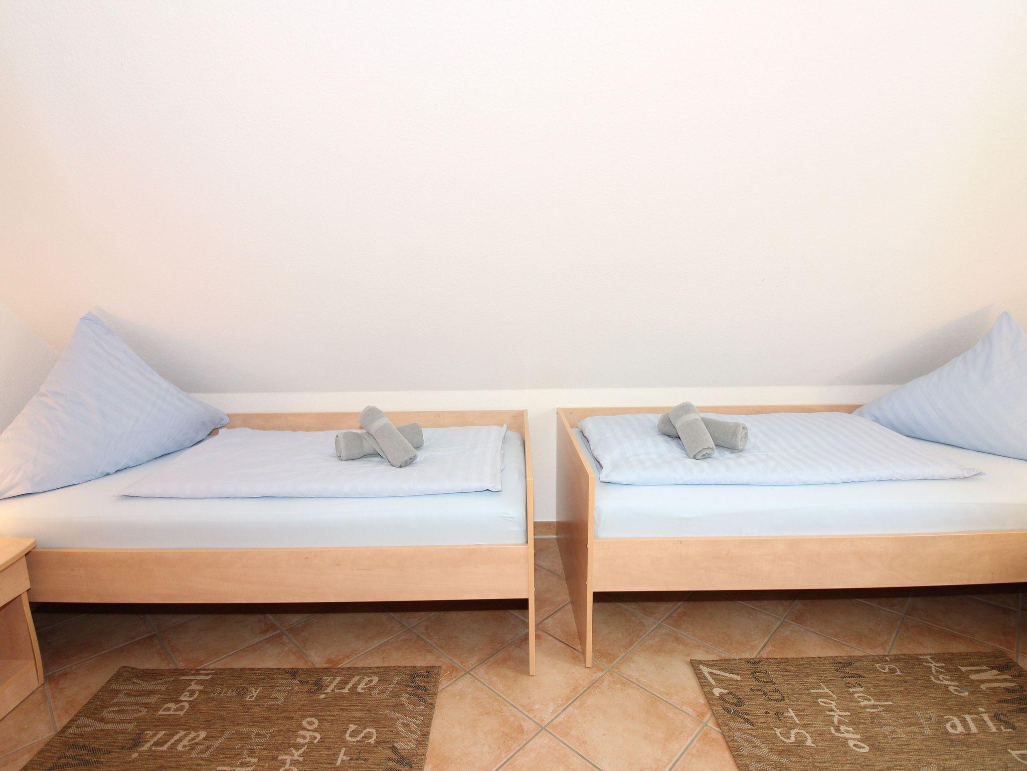 ein Schlafzimmer mit zwei Einzelbetten und Schrank im 1. Obergeschoss
