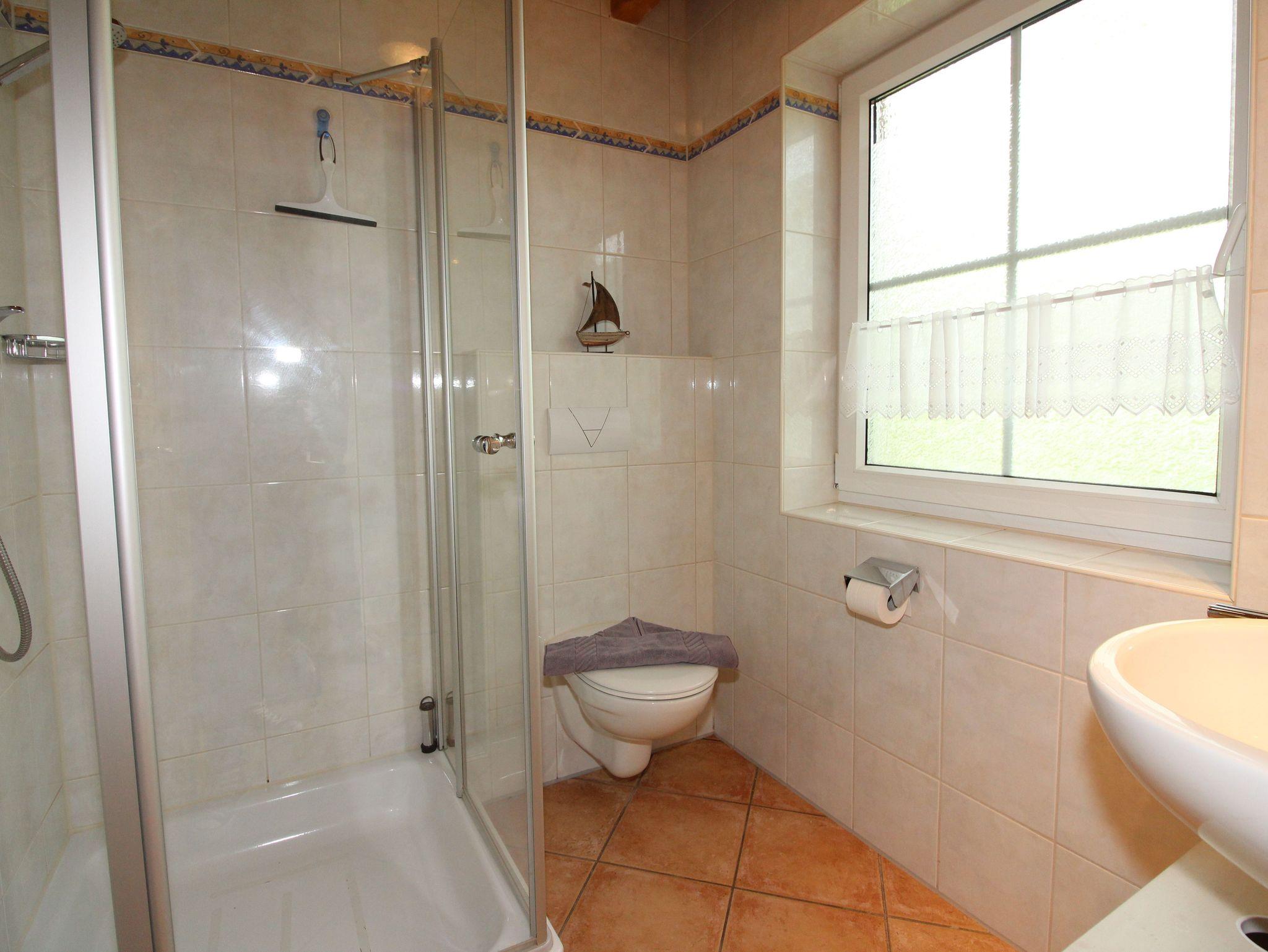 ein Tageslicht-Duschbad mit WC und Waschbecken im Erdgeschoß