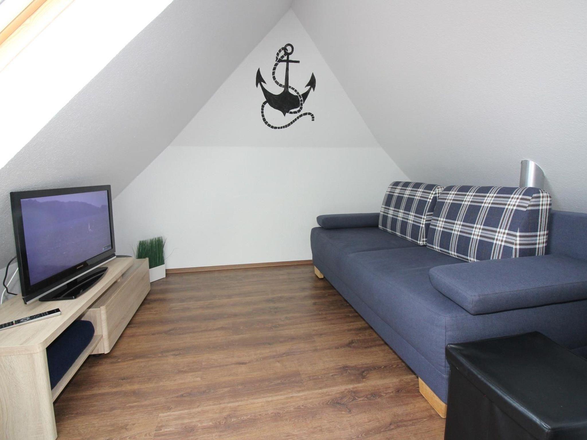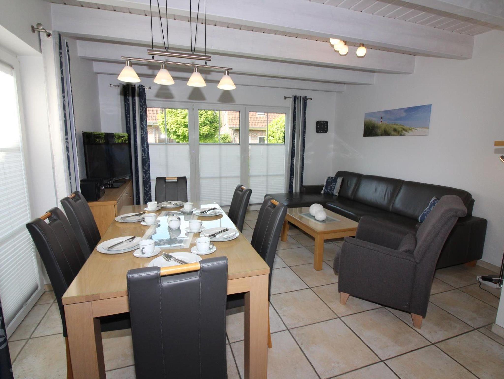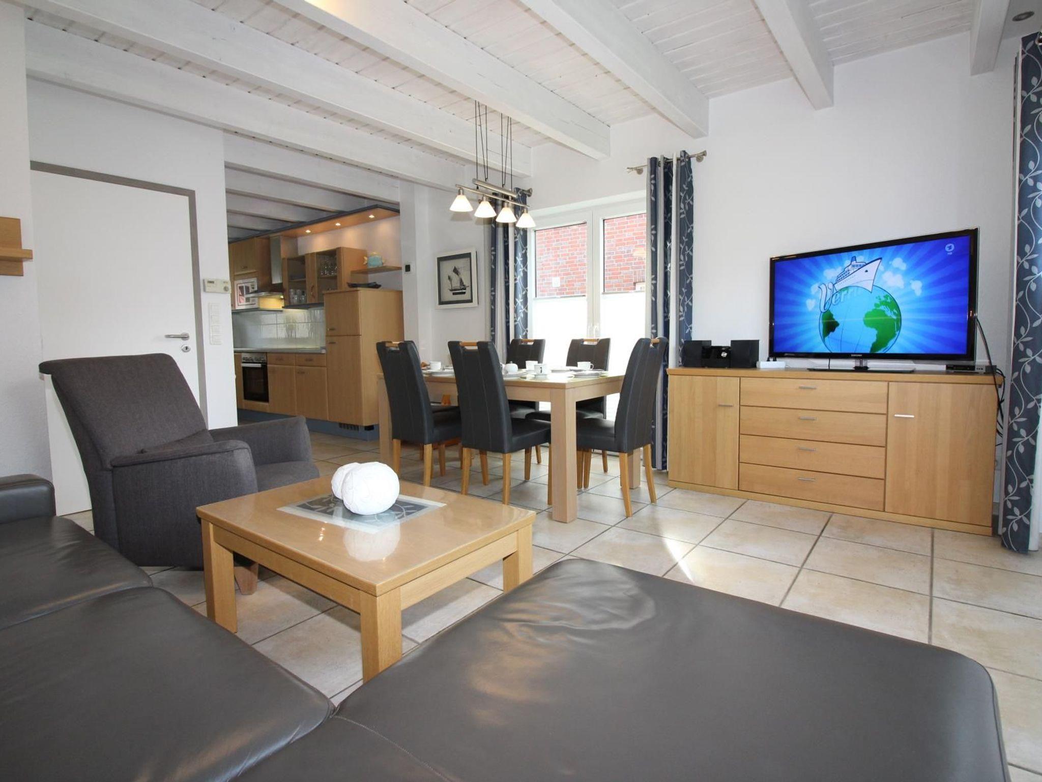 Im Wohnbereich lädt ein großes Sofa zum Verweilen ein. Ein Esstisch mit sechs Stühlen und ein Kinderhochstuhl stehen zur Verfügung sowie ein großes Flachbild-TV, DVD-Player und Hifi-Stereoanlage. Bücher für Groß und Klein und Gesellschaftsspiele lassen keine Langeweile aufkommen.