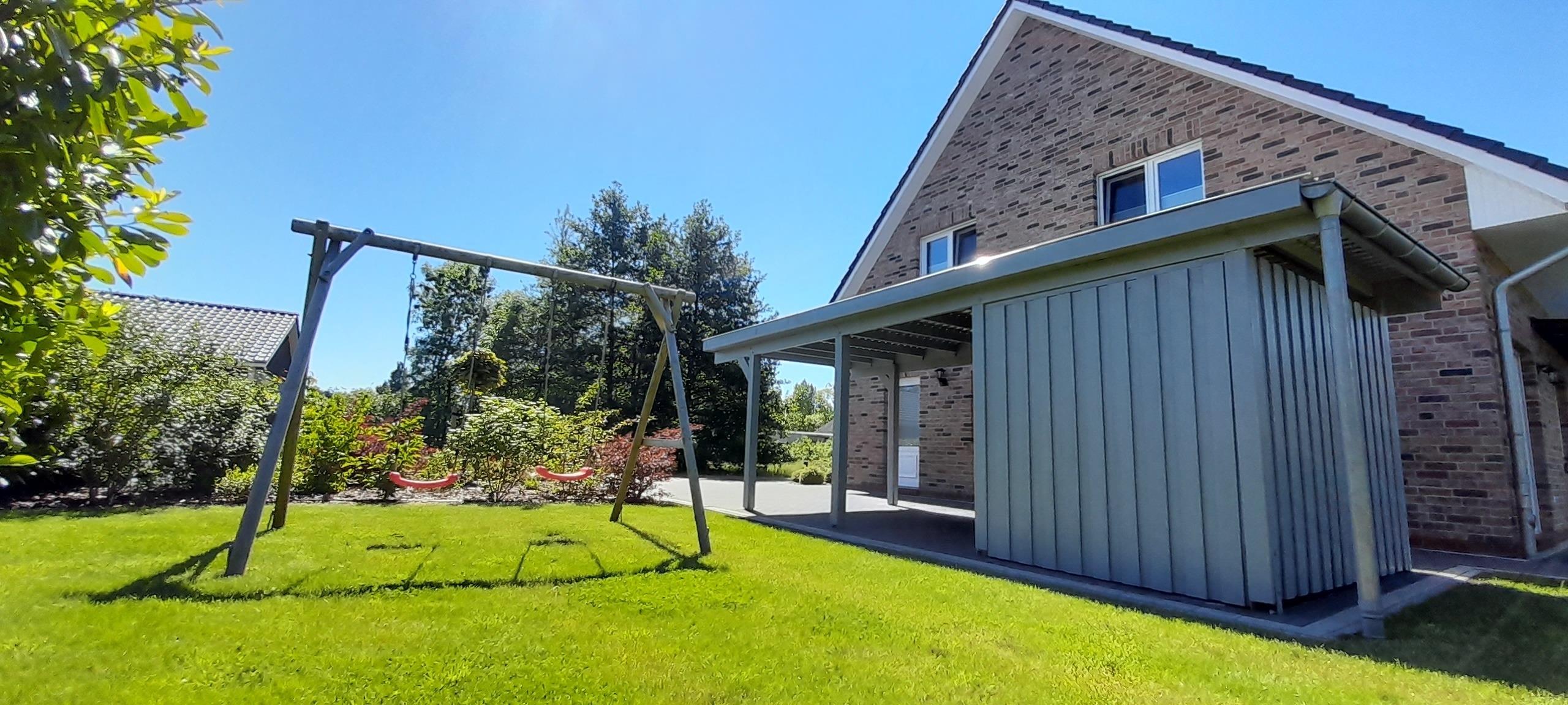 Das Haus ist mit Wlan und Smart TV ausgestattet. Im Aussenbereich befindet sich ein Carport mit Abstellraum.
