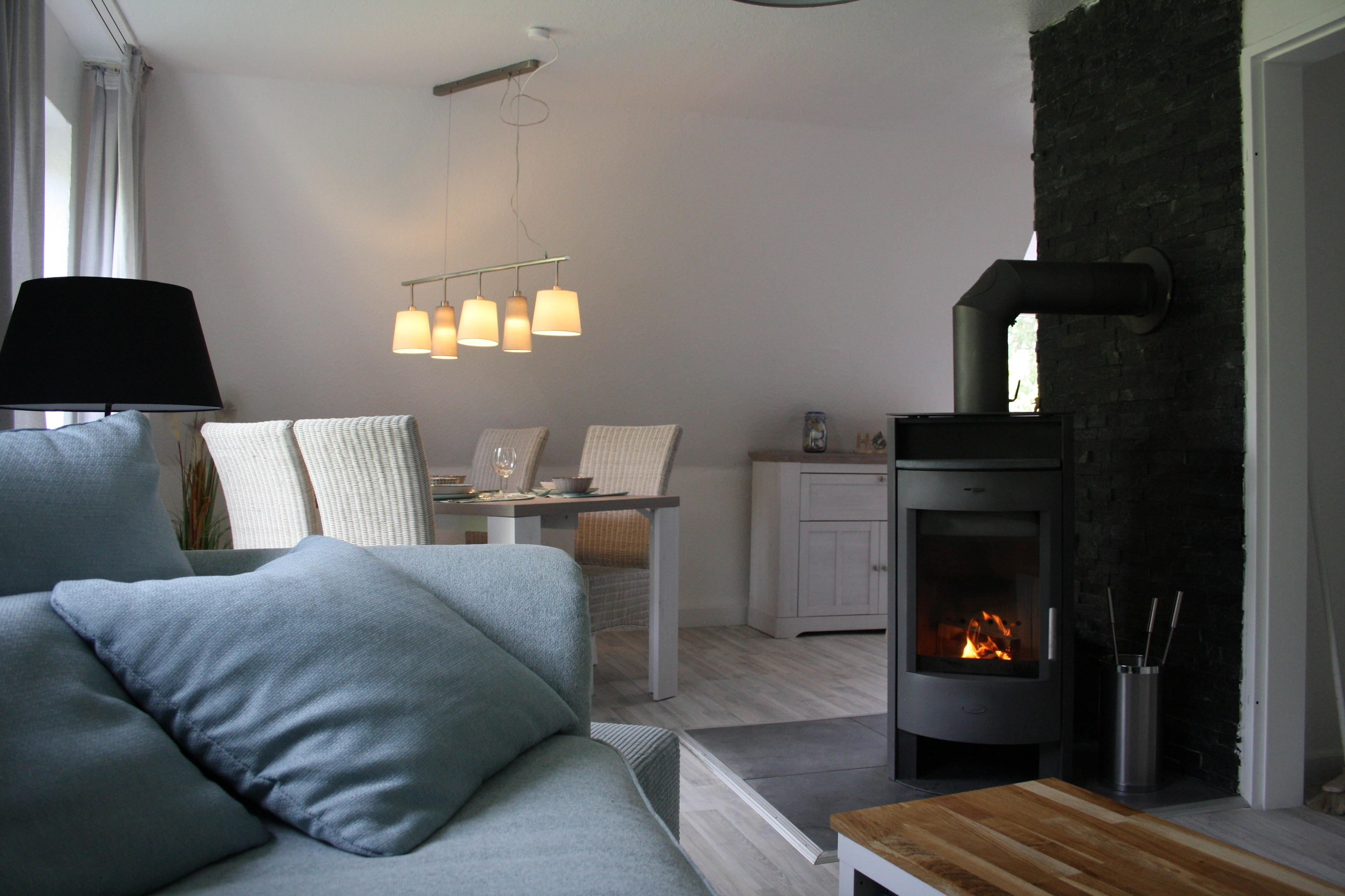 In der kühleren Jahreszeit können Sie auch mit einem guten Buch einem Glas Wein auf dem großen Sofa kuscheln und dabei dem Kaminfeuer zusehen.