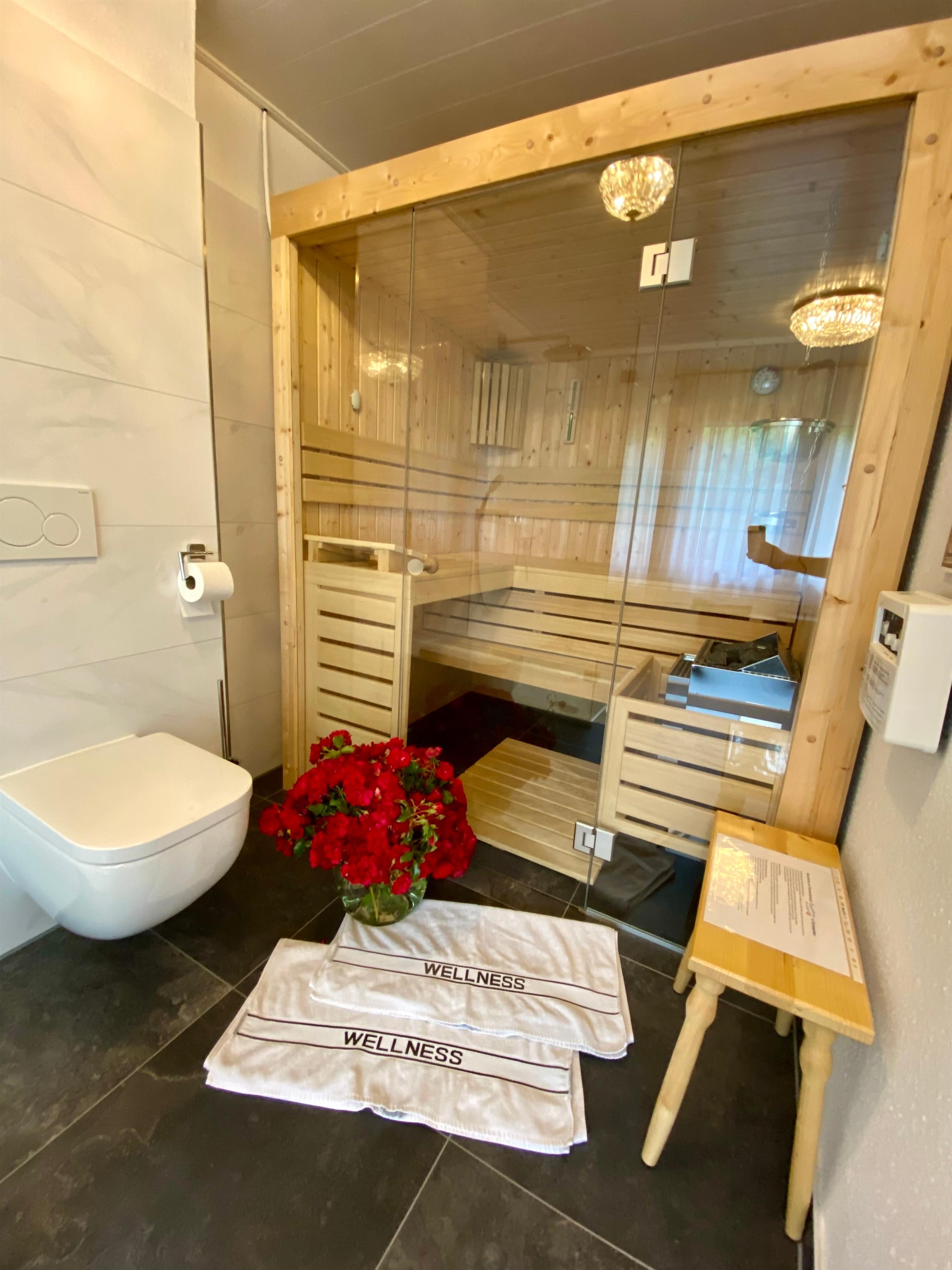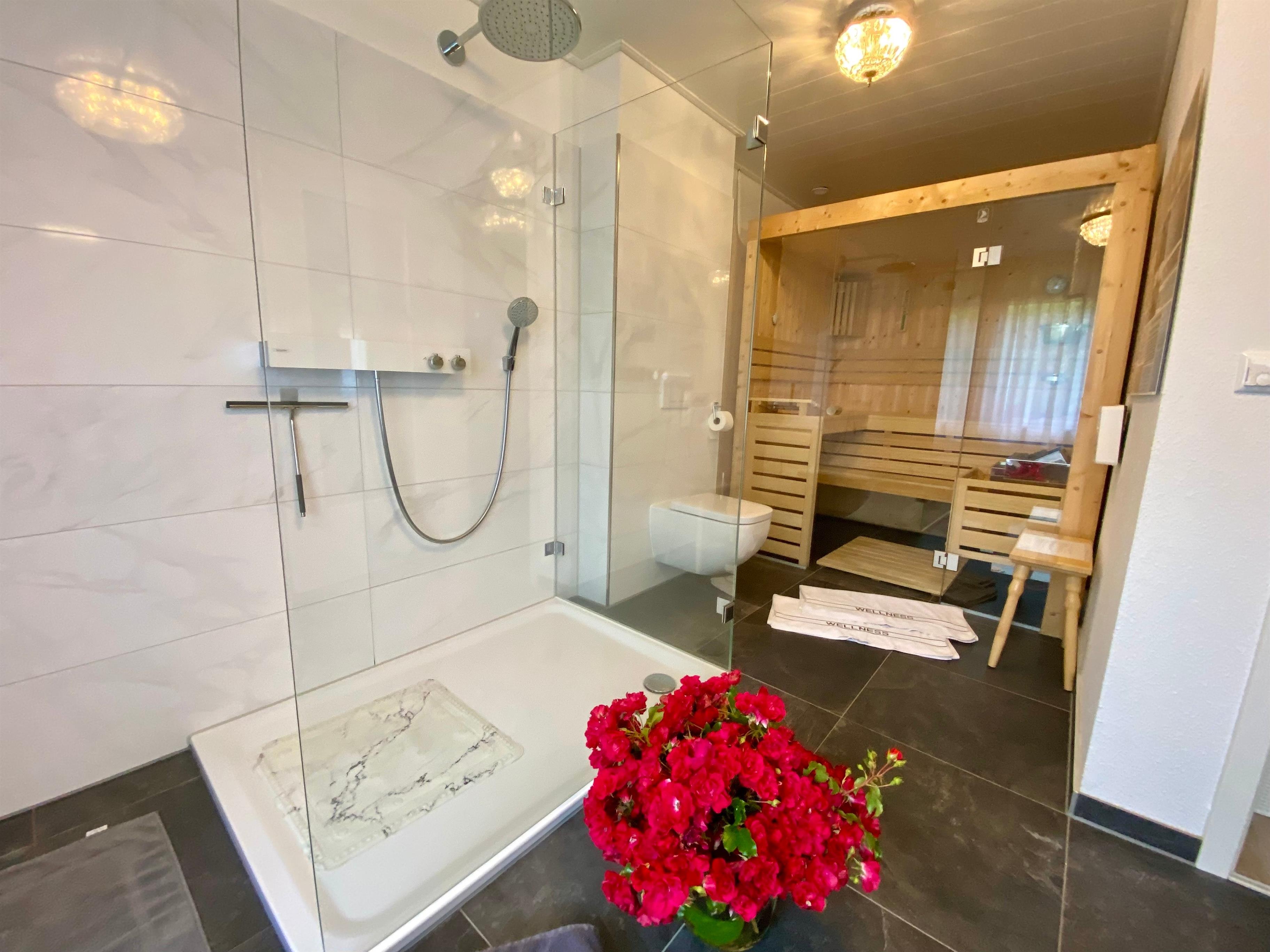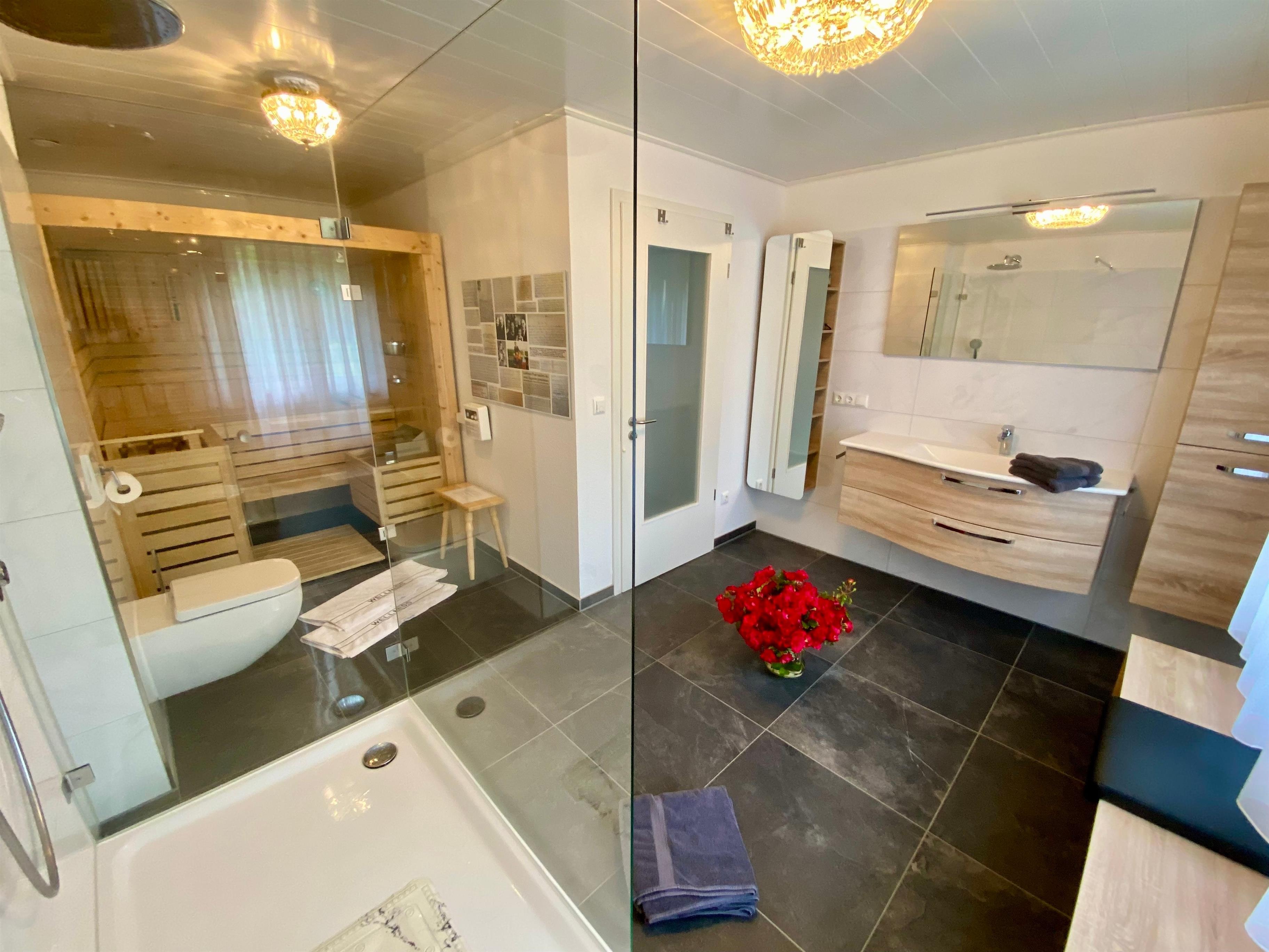 - Großzügiges Badezimmer mit Sauna