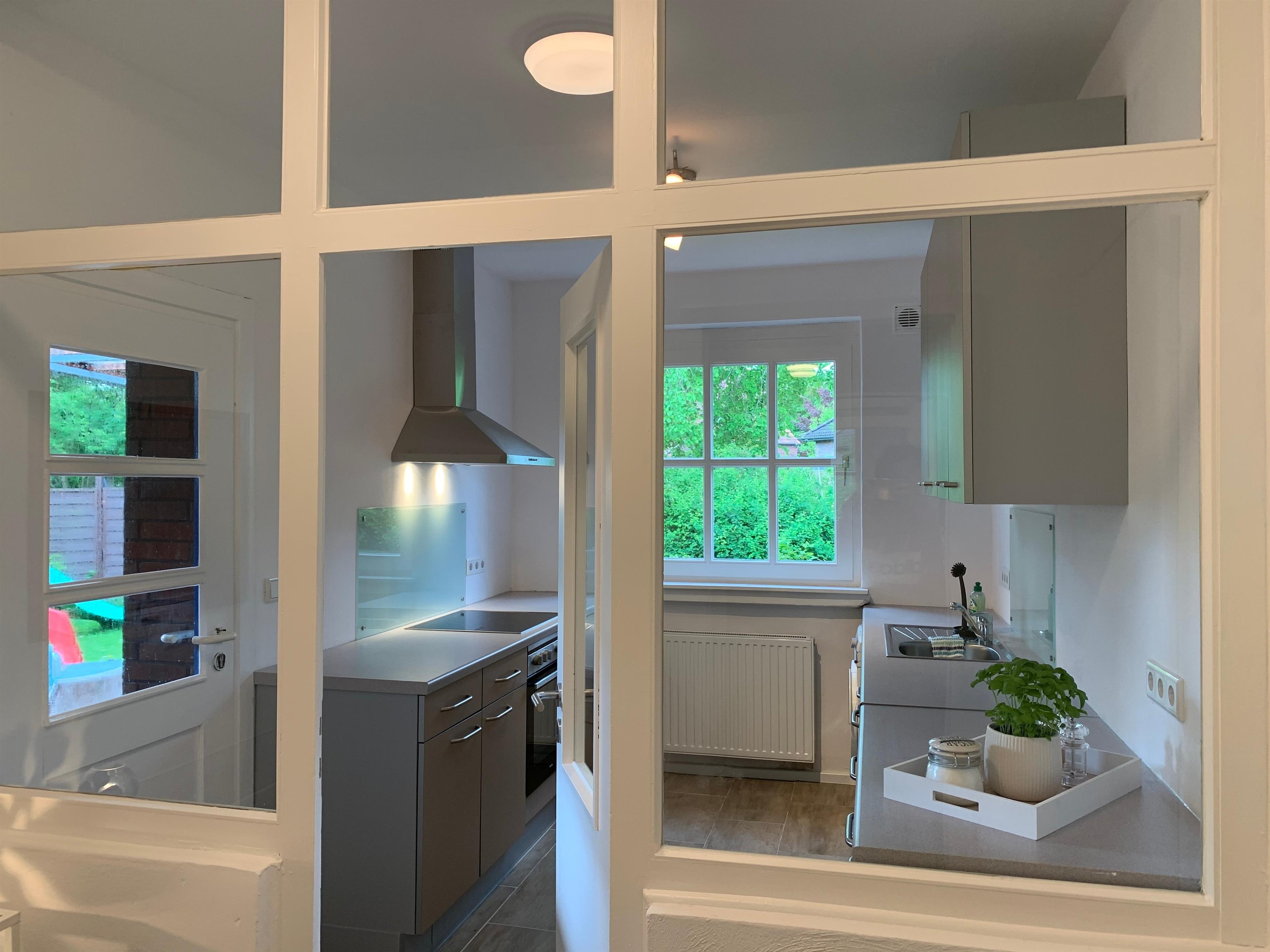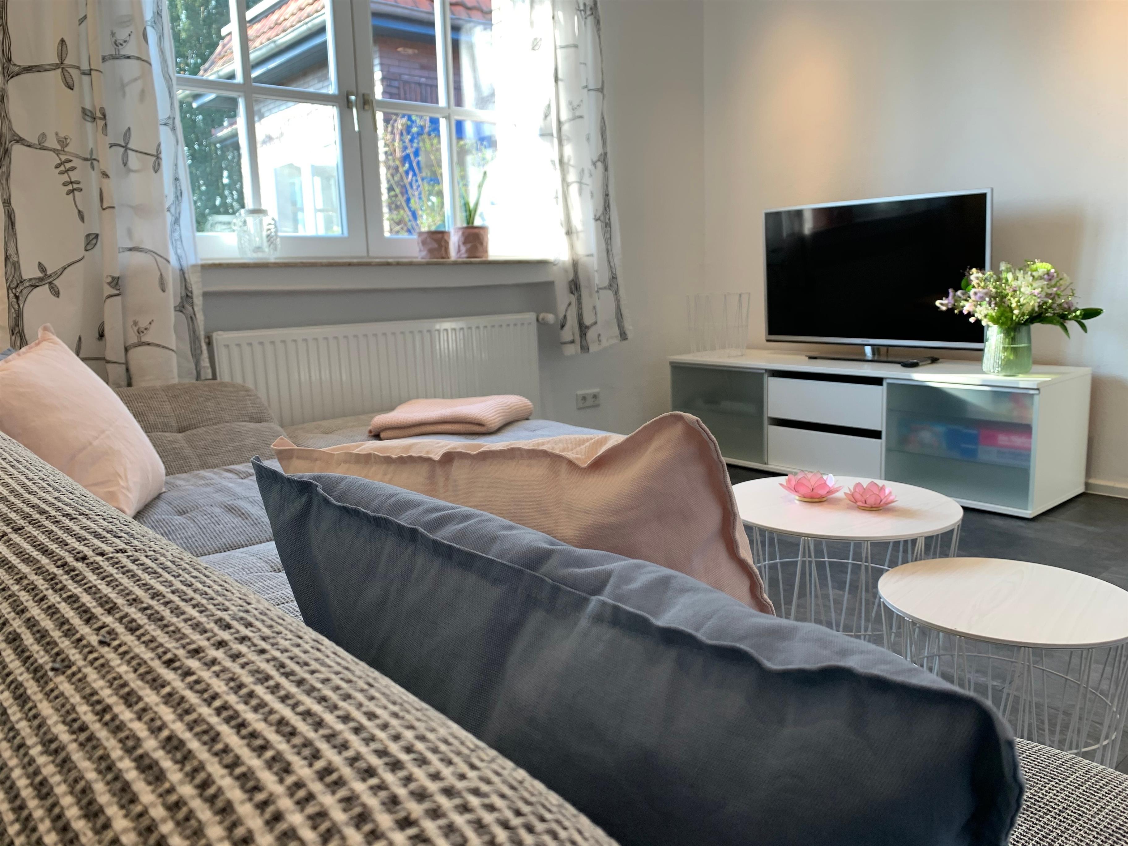 Die 2020 sanierte Wohnung ist ca. 90 qm groß, ist ein eigenständiges, ebenerdiges Gebäude im Herzen Burhaves und bietet regulär Platz für vier bis sechs Personen. Sie verfügt über zwei Schlafzimmer, ein Wohn- & Esszimmer, eine Küche, ein Bad, ein Gäste-WC und eine geräumige, überdachte Terrasse mit Blick in den grünen Garten mit Spielhaus für Kinder.