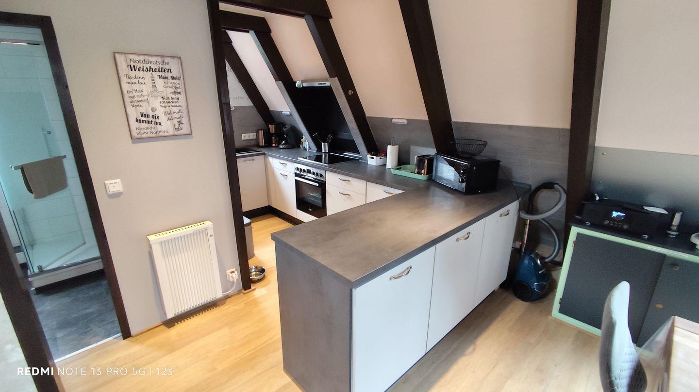 Die Küche ist komplett zur Selbstversorgung mit allen Annehmlichkeiten wie z.B. Induktionskochfeld, Abzugshaube, Backofen, Spülmaschine, Toaster, Kühlschrank mit kleinem Gefrierfach, Mikrowelle und ausreichend Geschirr und Besteck ausgestattet.