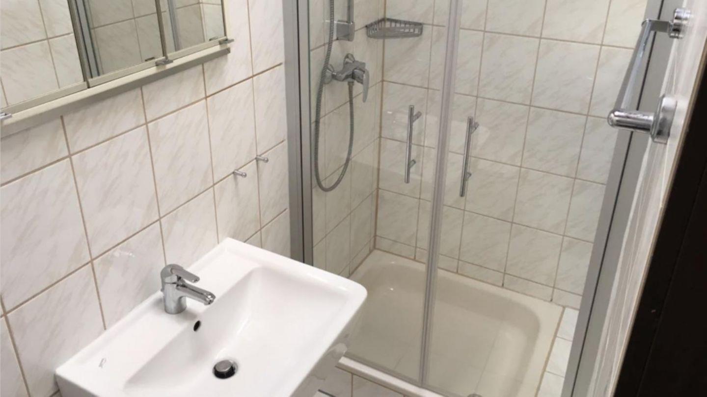 Das Badezimmer mit Tageslicht-Dachfenster wurde komplett neu gestaltet und ist mit einer Dusche, einem Waschbecken und einem WC ausgestattet.