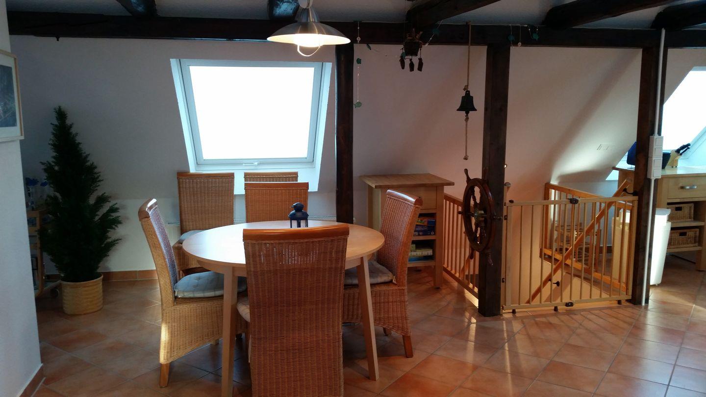Diese gemütliche Ferienwohnung befindet sich im 1. Obergeschoß eines 2-Parteien-Hauses. Das Erdgeschoss wird ebenfalls als Ferienwohnung vermietet. Die Wohnung hat einen großen und offen gestalteten Wohn- Eß- und Kochbereich, einen Schlafraum mit einem Doppelbett und ein modernes Tageslichtbad mit einer großzügigen Eck-Badewanne, eine separate Dusche, ein großzügiges Waschbecken und ein wandhängendes WC. (Bitte Bettwäsche und Handtücher mitbringen. Optional können Sie diese kostenpflichtig dazubuchen).
