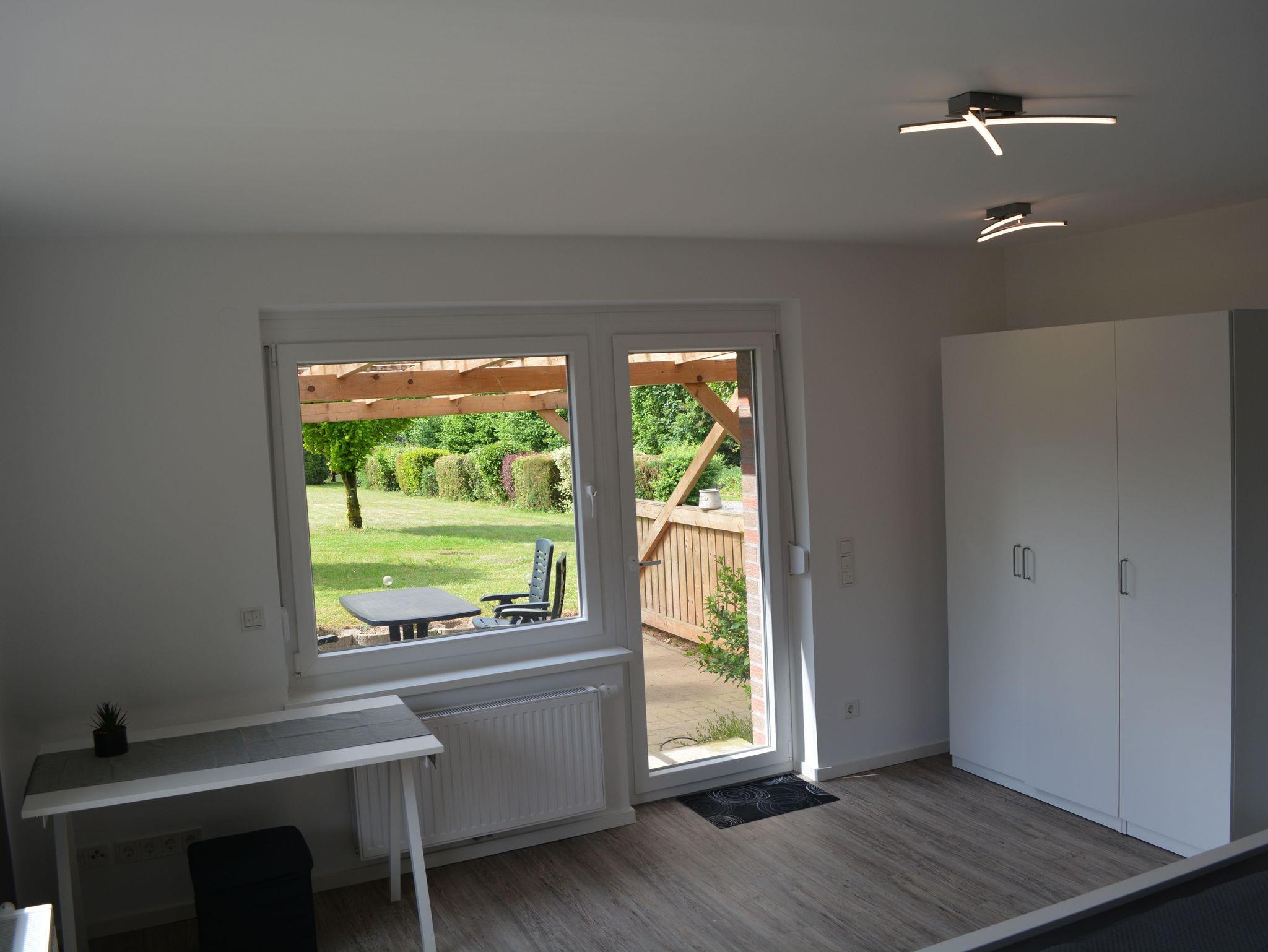 Auf der überdachten, möbelierten Terrasse können sie gemütlich sitzen und auch grillen. Ihr Fahrrad können Sie hier ebenfalls geschützt abstellen. Im Badezimmer mit WC gibt es eine Badewanne sowie eine Dusche, ein Föhn ist auch vorhanden. Die Küche ist für 6 Personen ausgestattet. Wasserkocher ,Toaster, Filter-Kaffeemaschine Microwelle sowie einen Airfryser finden sie hier. Auf dem nahegelegenen Spielplatz können sich die Kleinen austoben. Für den kleinen und großen Hunger findet sich sicher für jeden Geschmack etwas im fußläufig erreichbaren Restaurant beim Golfplatz. Frische Brötchen erhalten sie beim Bäcker im Nachbardorf Moisburg, ca.2 km von der Ferienwohnung entfernt.