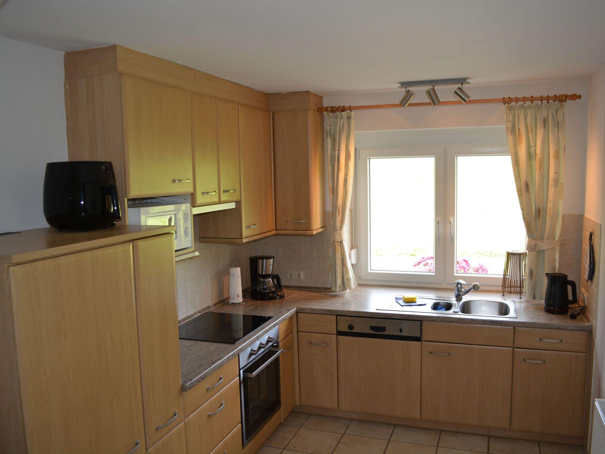 Herzlich Willkommen in Inauen`s Kiek in. Durch den separaten, barrierefreien Eingang erreichen sie die großzügig geschnittene, 90 qm große Ferienwohnung. Wer die Ruhe und Gelassenheit sucht ist bei uns genau Richtig. Durch den freundlichen Eingangsbereich erreichen Sie Küche, Bad, Wohnzimmer mit großzügigem Sofa, Smart TV, Internet Radio und traumhaften Ausblick, sowie zwei der drei Schlafräume. Der dritte Schlafraum ist vom Wohnzimmer aus zu erreichen. Von diesem Schlafraum gelangen Sie auf die südlich ausgerichtete, überdachte Terrasse. Im Wohnzimmer kann das komfortable Ecksofa zum Schlafplatz für eine weitere Person hergerichtet werden..Auch auf Kabelfernsehn und W-Lan müssen sie nicht verzichten. Sollten sie doch einmal im Urlaub arbeiten müssen oder befinden sich gar auf Geschäftsreise, gibt es im Schlafzimmer einen Schreibtisch mit Ausblick ins Grüne. Die Betten in den Schlafzimmern haben zwei getrennte Matratzen und insgesamt ein Liegefläche von 1,80 X 2,00 Meter, mit Kopf- und Fußteil. Die Nachttische bieten Ablagefläche für die Abendlektüre .Das Bett im neu entstandenen Schlafzimmer hat eine Größe von 1,40x 2,00 m.
