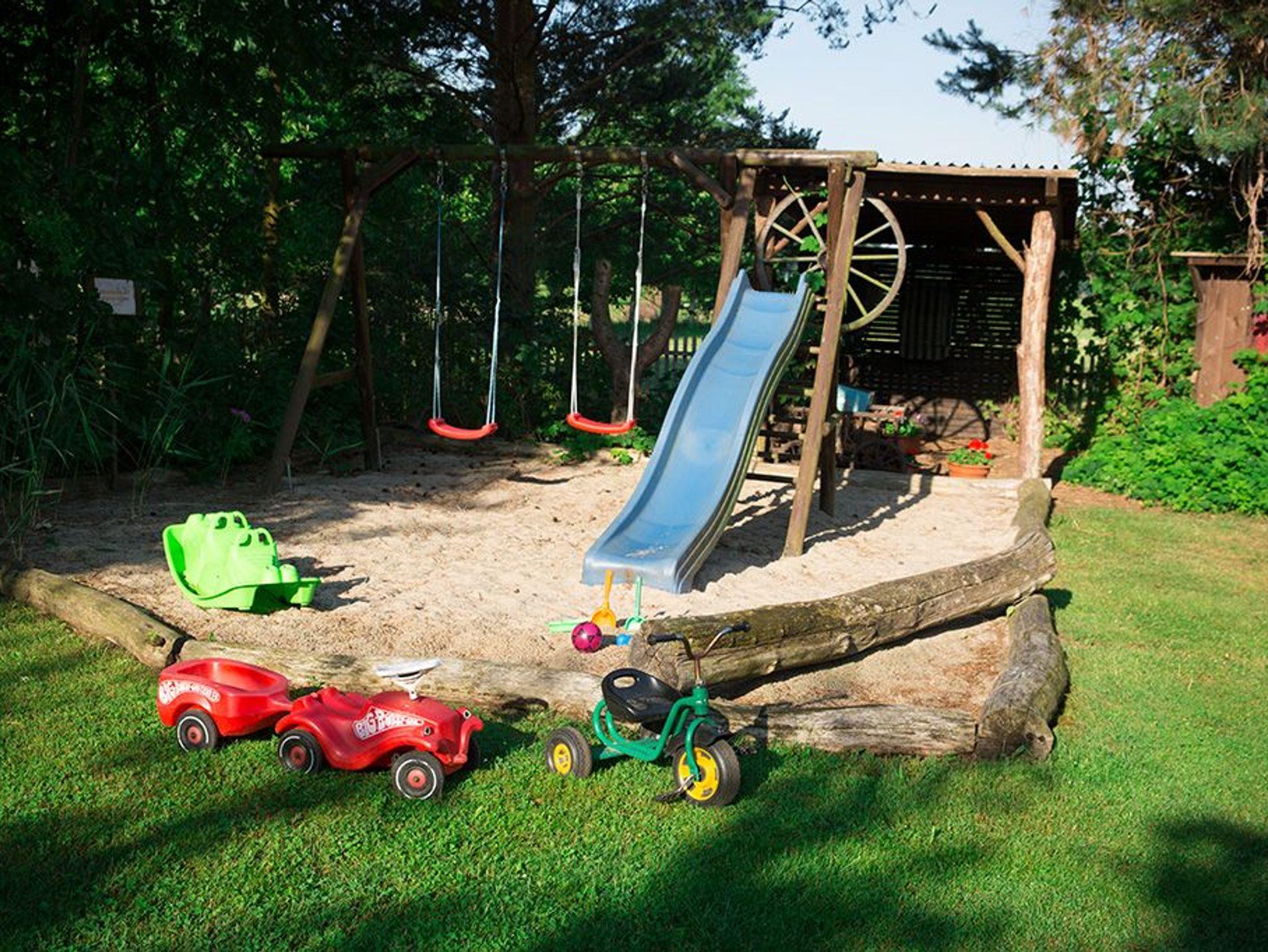 Ein weiteres ca. 1500 qm großes Gemeinschaftsgrundstück unserer Ferienwohnungen und Ferienhäuser umgeben von weidenden Rindern und Pferden steht ebenfalls zu Ihrer Verfügung. Neben einer Tischtennisplatte und einem Spielplatz finden Sie hier genug Platz für viele Sportarten.