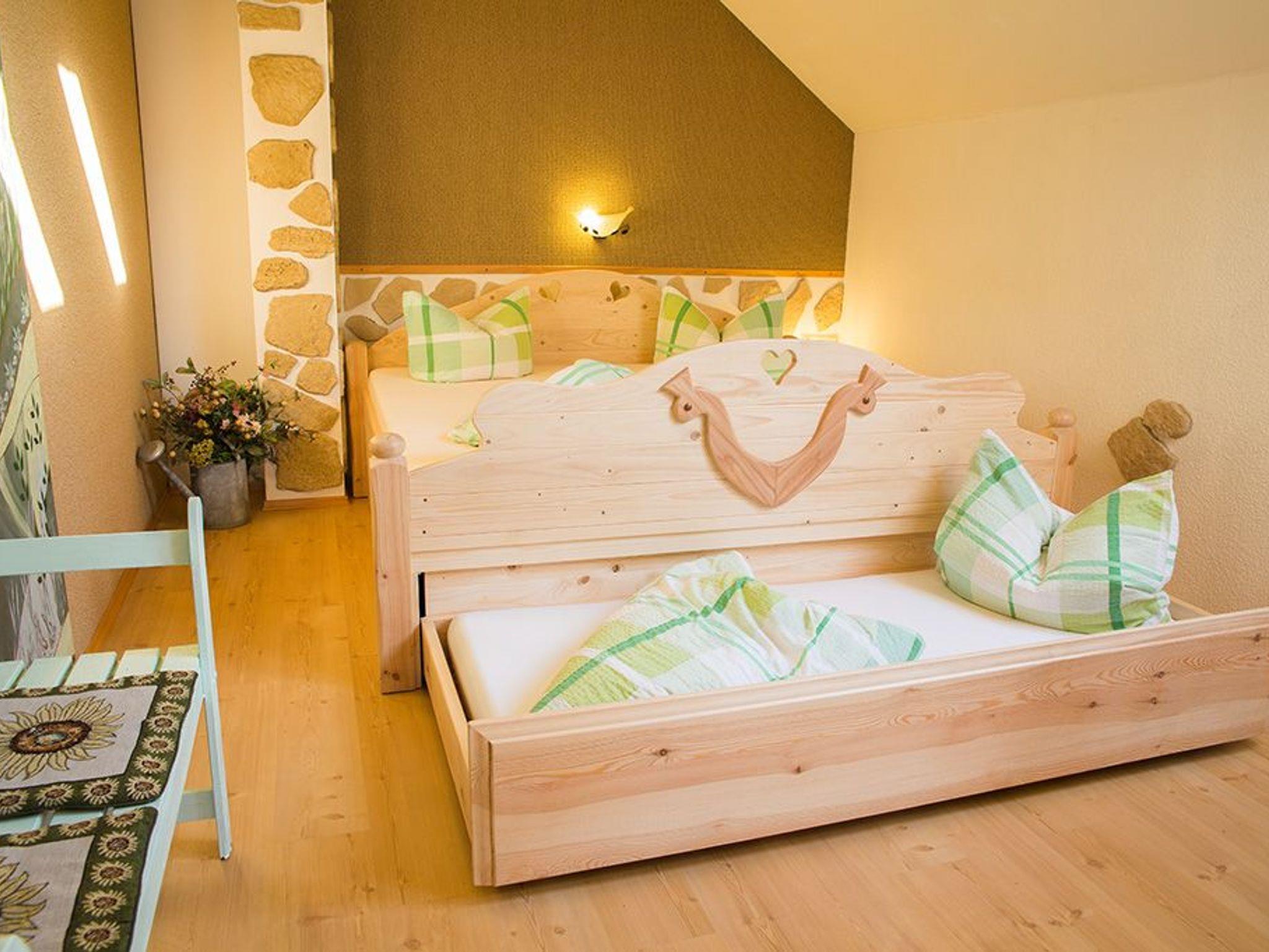 Die Ferienwohnung Storchenblick bietet Ihnen Schlafmöglichkeiten für 2 bis 5 Personen. Im Erdgeschoß befindet sich das Wohnzimmer mit der Küche. Sie finden dort eine voll ausgestattete Küche mit Ceranfeld, Backofen, Kühlschrank mit Gefrierfach, Geschirrspüler, Mikrowelle, Kaffeemaschine und Wasserkocher. Die vom ortsansässigen Zimmermann angefertigte Schlafcouch bietet Ihnen Übernachtungsmöglichkeiten für zwei Personen auf jeweils 90 cm breiten Matratzen. Im Obergeschoß befindet sich das Schlafzimmer mit Doppelbett und Einzelbett sowie das Bad mit Dusche und WC. Von der Tür im Erdgeschoß aus gelangen Sie auf Ihre eigene Terrasse mit Sitzgruppe. Zu den Ferienwohnungen Spreewald und Storchenblick gehört auch eine Gemeinschaftsterrasse und ein schönes offenes Grundstück. Auch befinden sich ein Fahrradunterstand sowie Parkplätze am Feriengrundstück. Diese können natürlich kostenfrei genutzt werden. In der Ferienwohnung haben Sie über WLAN Zugriff auf das Internet. Ein Kinderreisebett sowie einen Hochstuhl stellen wir Ihnen bei Bedarf gern kostenfrei zur Verfügung. Bitte teilen Sie uns dies nur kurz vor Ihrer Anreise mit. Für Familientreffen oder ähnliches ist die Reservierung beider Ferienwohnungen sehr empfehlenswert, da sie direkt nebeneinander liegen.