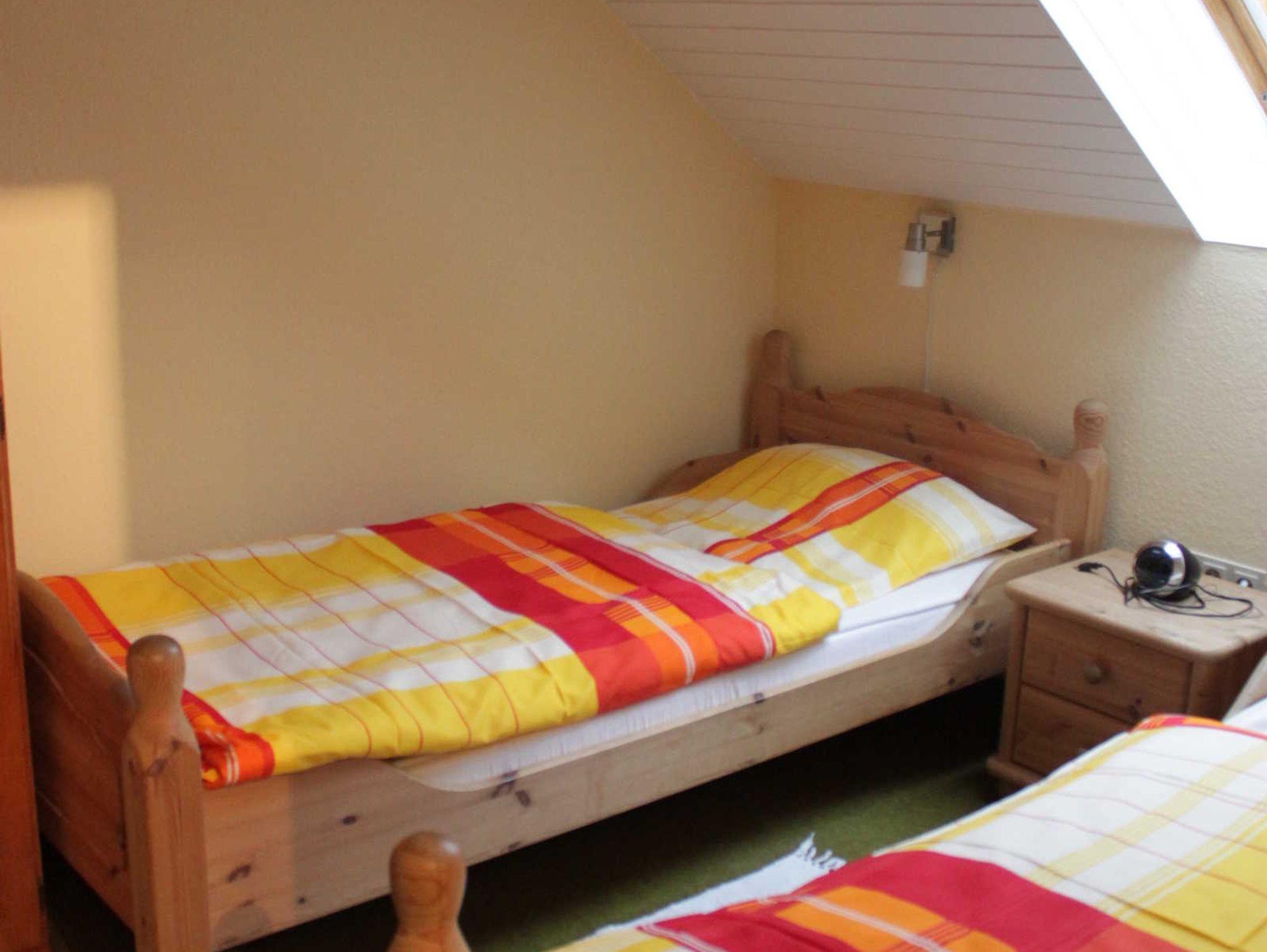 Im Dachgeschoss sind 2 Schlafzimmer mit je 2 Betten; aus dem einen Schlafzimmer heraus gelangt man auf die Loggia. Ausserdem sind in diesem Geschoss noch ein Duschbad mit WC, Waschbecken, Waschmaschine und Wäschetrockner vorhanden. Im Garten können Sie, durch einen Zaun und durch eine Hecke vom Nachbargarten abgegrenzt, Liegestühle, Gartenmöbel, eine Schaukel und einen Sandkasten nutzen. Besteck, Geschirr, Töpfe, Bügeleisen, Staubsauger, Kaffeemaschine, Kinderstuhl, Spiele, eine kleine Hausbücherei, ein Grill, ein Schlitten, eine Espressomaschine, Wasserkocher stehen zu Ihrer Verfügung bereit.