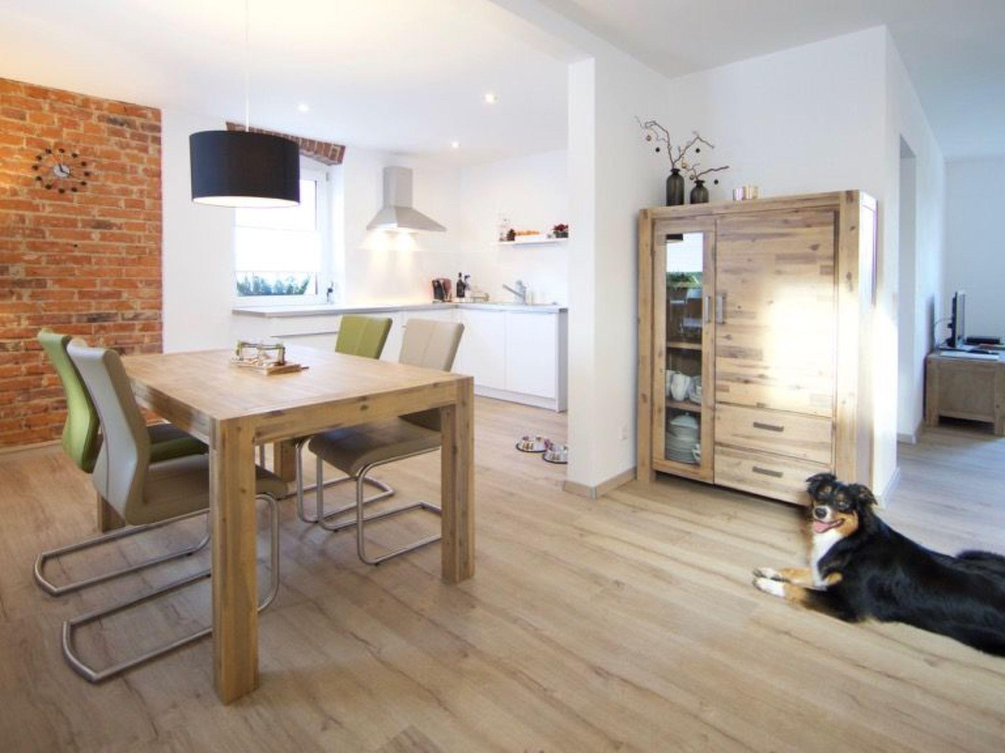 The bright and friendly flat has a living/dining room area with a pull-out sofa bed for a maximum of two children, a flat-screen TV with satellite TV and a wooden table with seating for four people. Directly adjacent to this is the open and modern fitted kitchen with induction hob, fridge with freezer compartment, dishwasher, toaster and coffee machine, which leaves nothing to be desired. The separate bedroom has a double bed (1.60 m wide). The modern bathroom is equipped with a floor-to-ceiling glass shower and a rain shower, as well as a toilet, a washbasin and a hairdryer. Heating is available throughout the flat. Free internet access (high-speed DSL) is available in all rooms of the flat.