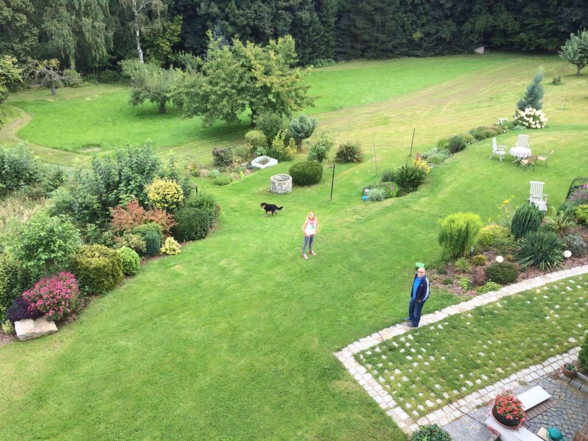 The garden of over 8,000 square metres, which borders directly on the landscape conservation area, offers you peace and relaxation. A private, furnished and above all quiet terrace with table and chairs is at your free disposal. It is also possible to use the free bread roll service for breakfast (charged according to the desired number of pastries). There is also parking space for your car on the property with its own driveway. You are welcome to bring your four-legged friend with you for a fee. The entire property is fully fenced and your pet is welcome to roam freely everywhere.