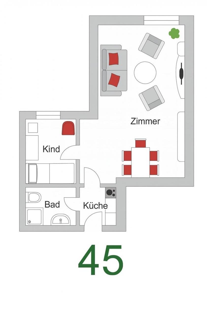 2-Zimmer-Wohnung (ca. 40 qm) mit einem Schlafzimmer