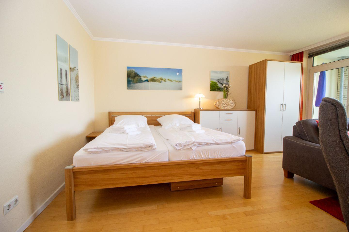 Strandhochhaus Döse, 3.te Etage, Whg. Nr. 20, bis 2 Pers., ca. 45 qm Größe, durch Baumkronen eingeschränkter Meerblick, ca. 100 m zum Sandstrand Döse, kombinierter Wohn-Schlafbereich mit Doppelbett, sep. Küche mit 4-Platten-Ceranfeld, Geschirrspüler und Backofen, Badewanne mit Duschabtrennung und WC, Balkon, WLAN, Aufzug im Haus, Haustiere nicht gestattet, Nichtraucherwohnung, Pkw-Stellplatz am Haus, Strandkorb im Sommer 2025